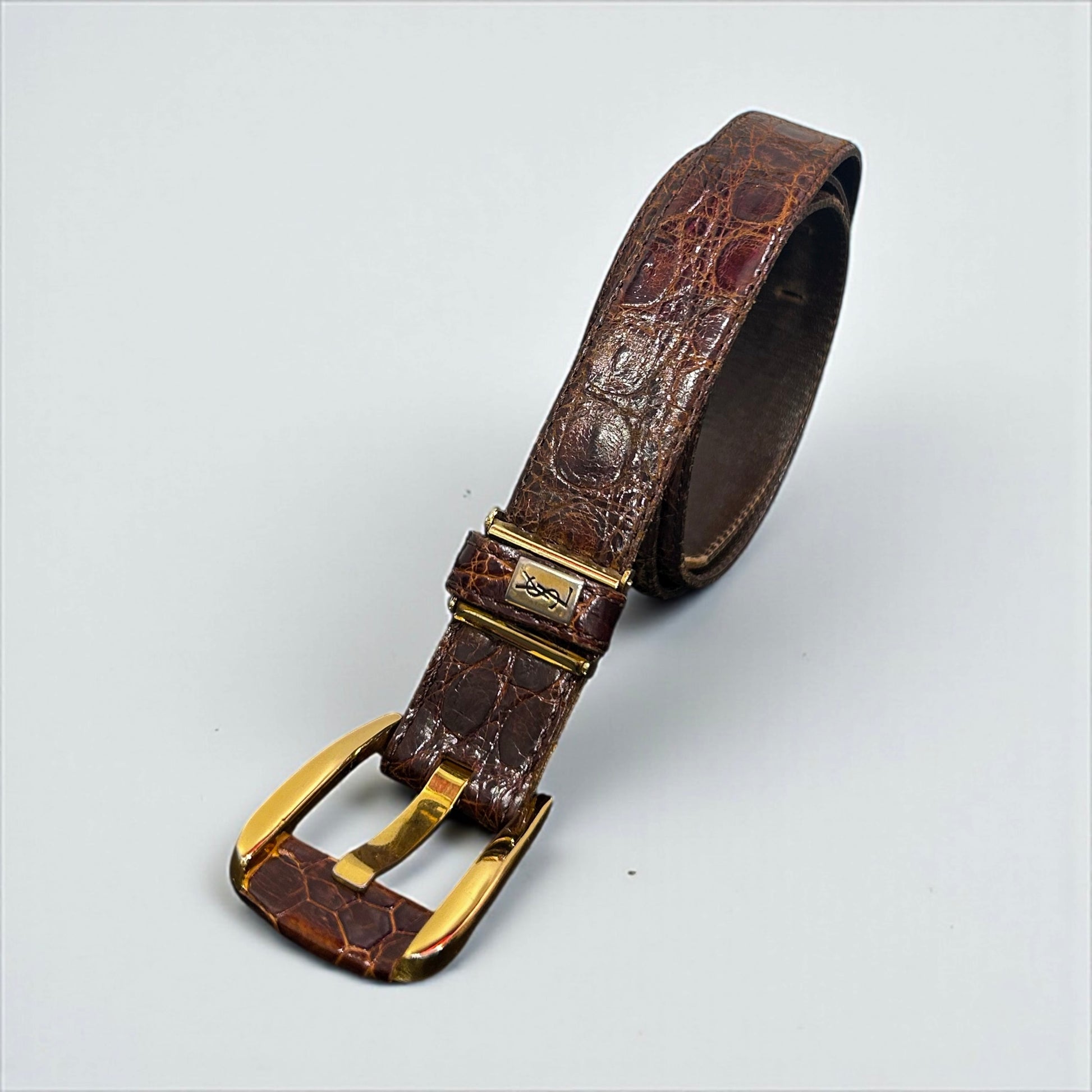 Vintage Yves Saint Laurent Croc-Embossed Leather Belt ,Late 1980s
