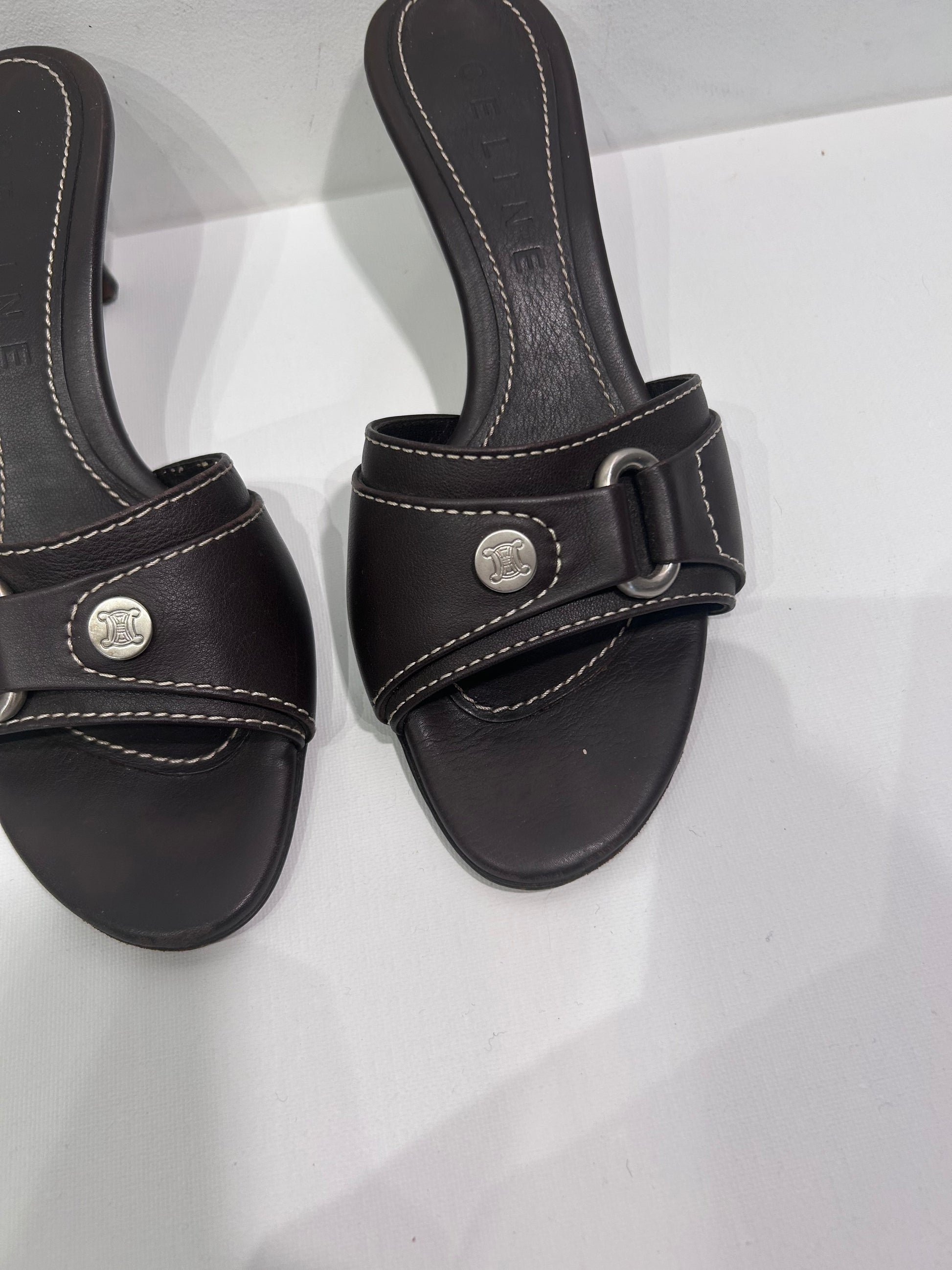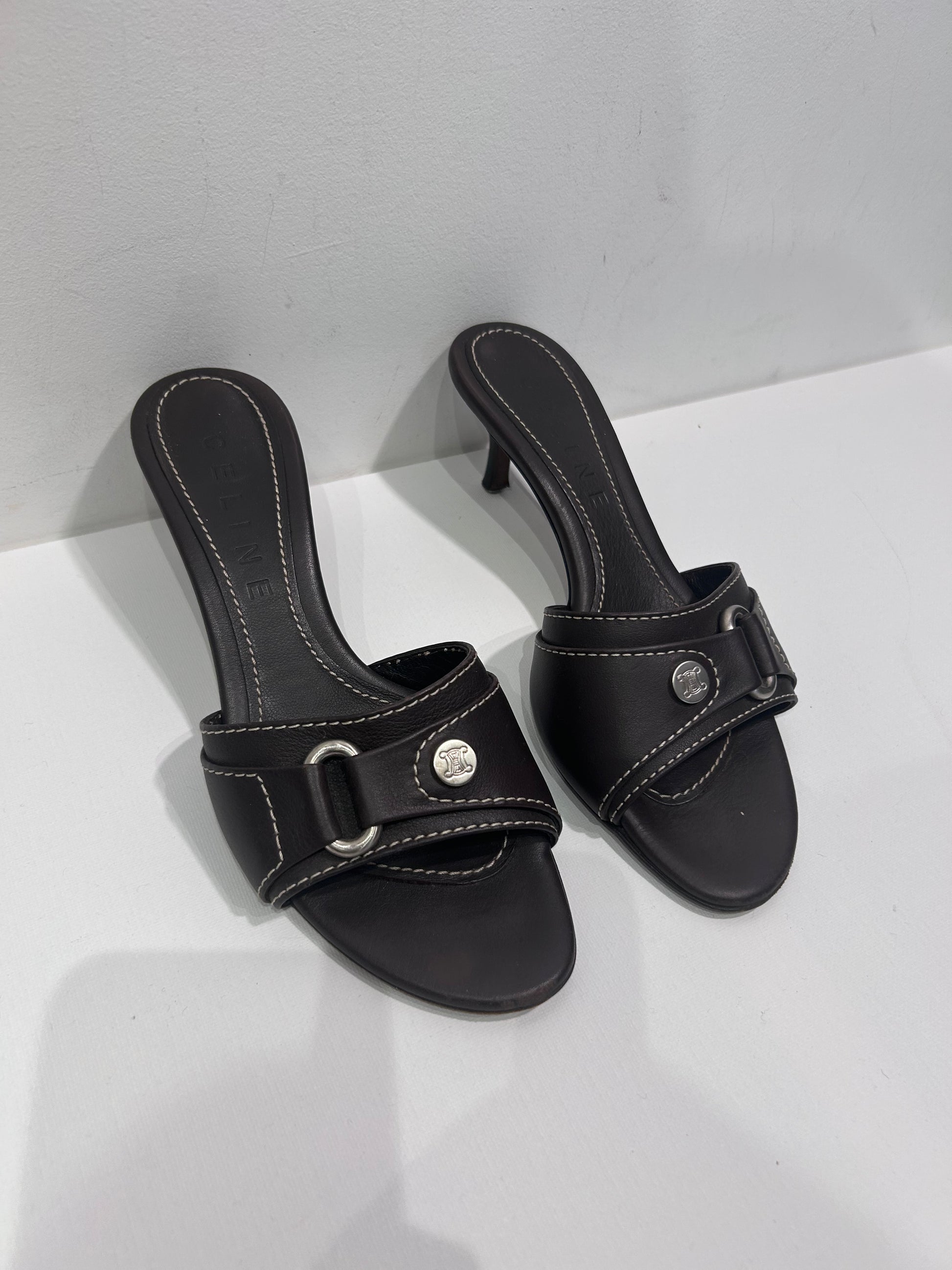 2000s Celine Leather Kitten Heel shoes with Triomphe Hardware