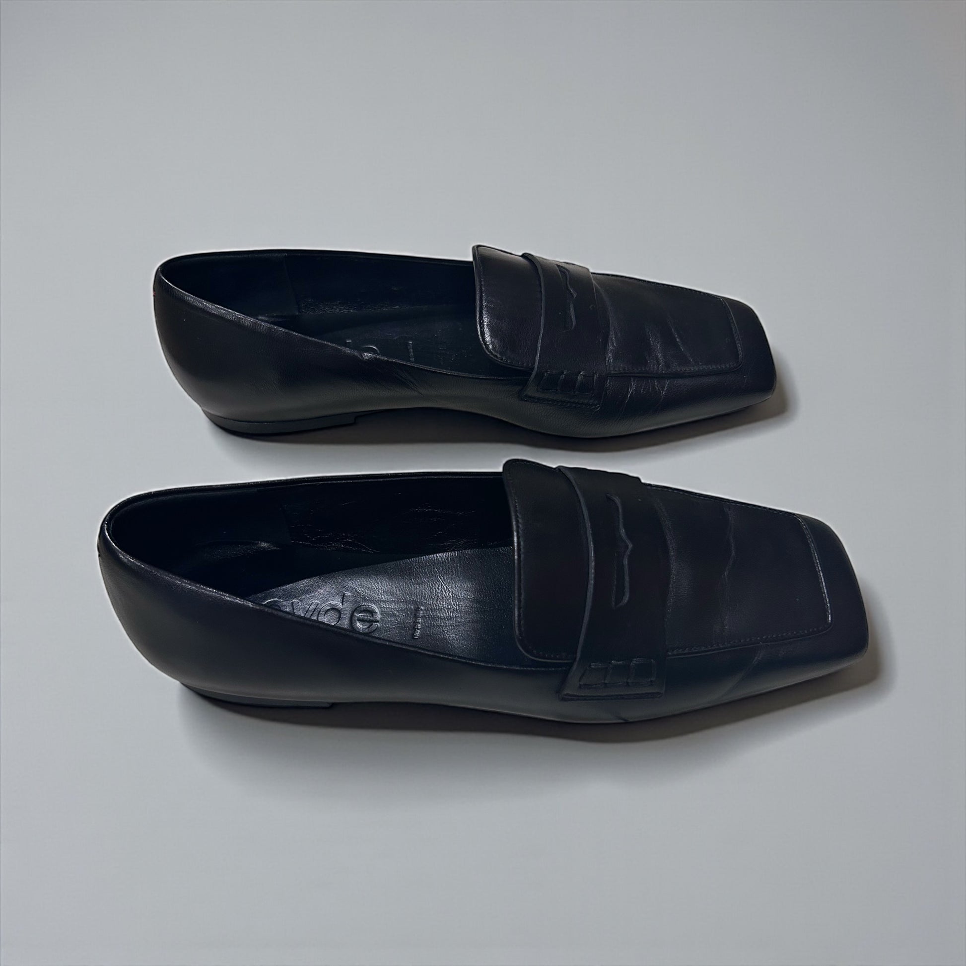 נעלי מוקסין קלאסיות מבית Aeyde, בעיצוב מינימליסטי המזוהה עם בית העיצוב הברלינאי.