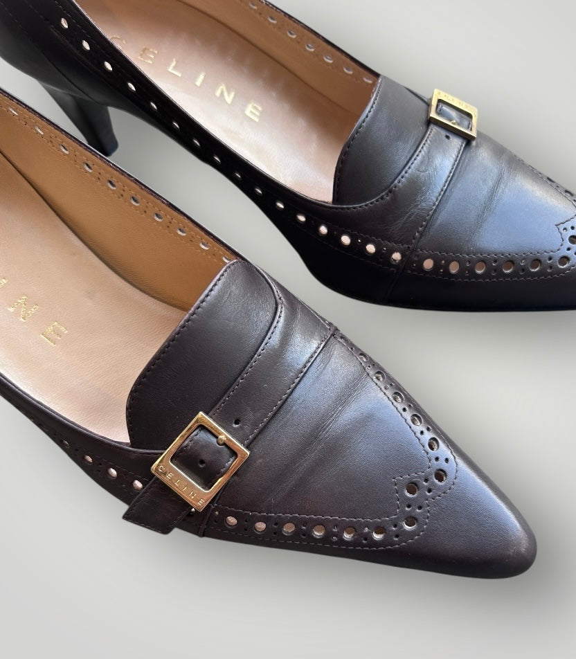 נעלי עקב וינטג’ מבית האופנה הצרפתי Celine, בעיצוב קלאסי ועל־זמני המזוהה עם הקו הנקי והאיכותי של המותג בשנות ה־90.