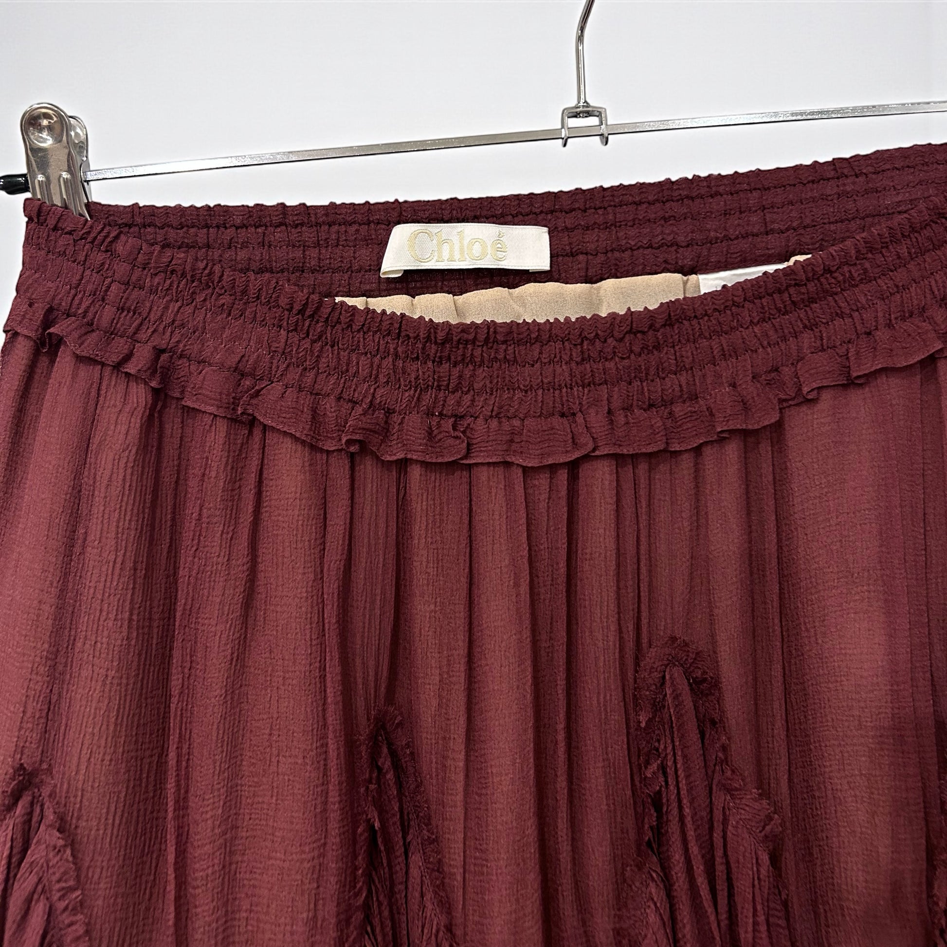 Chloé Silk Plum Bohemian Crinkled Skirt| Early 2000’s