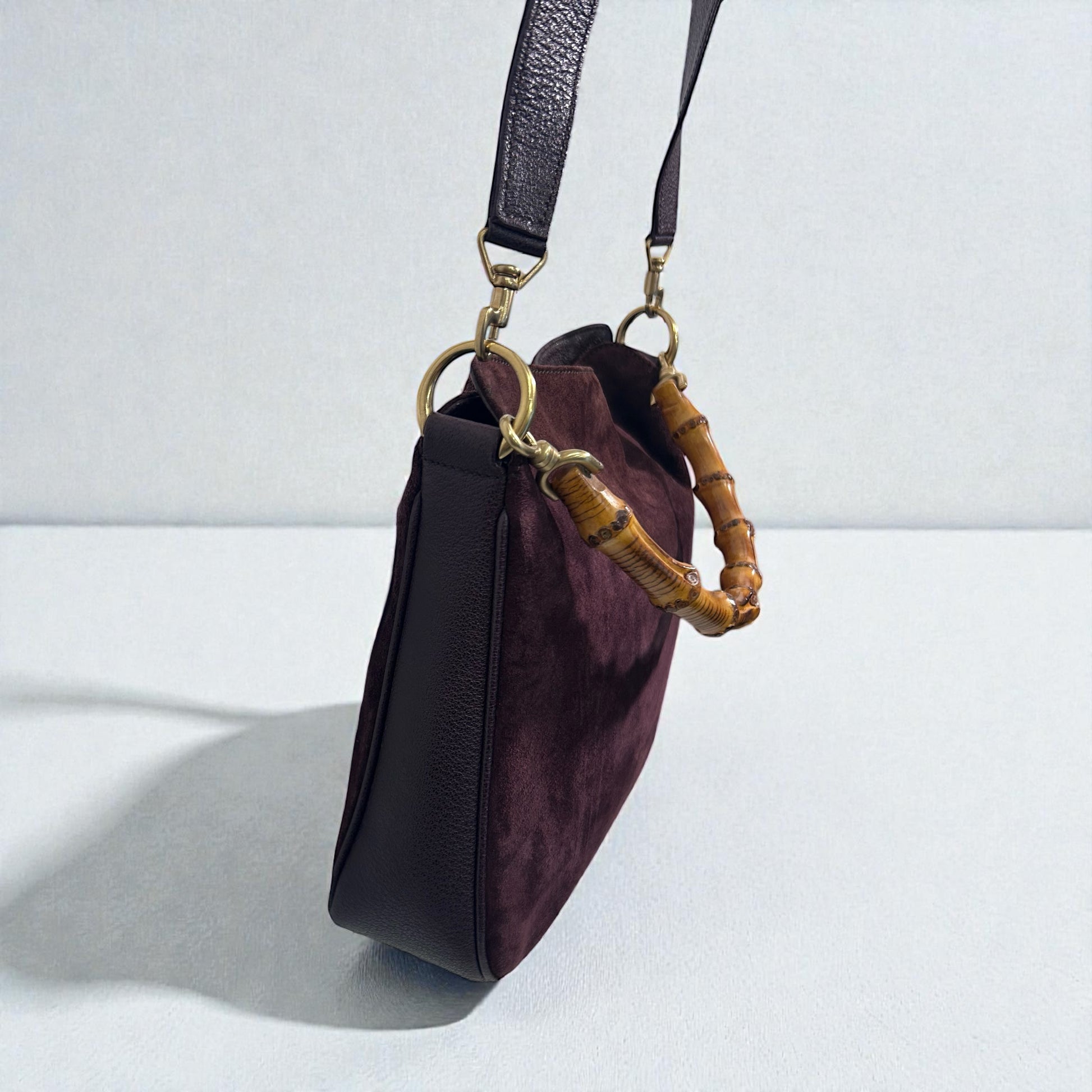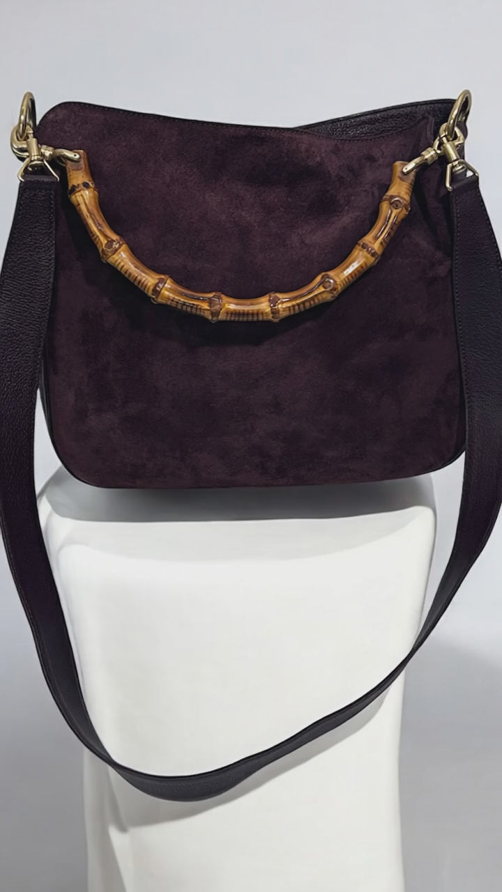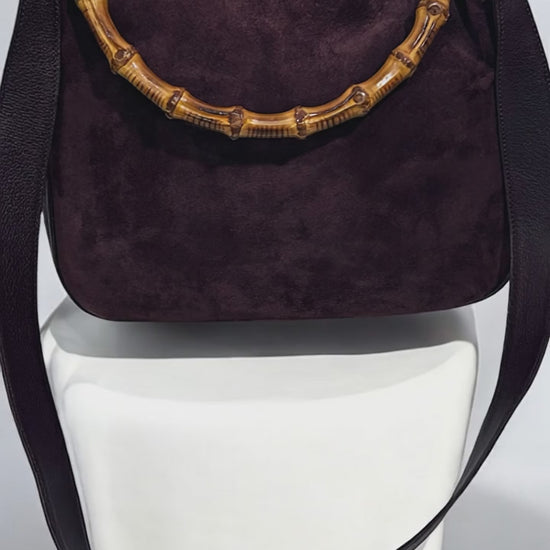 Vintage Gucci Burgundy Suede Bamboo Shoulder Bag