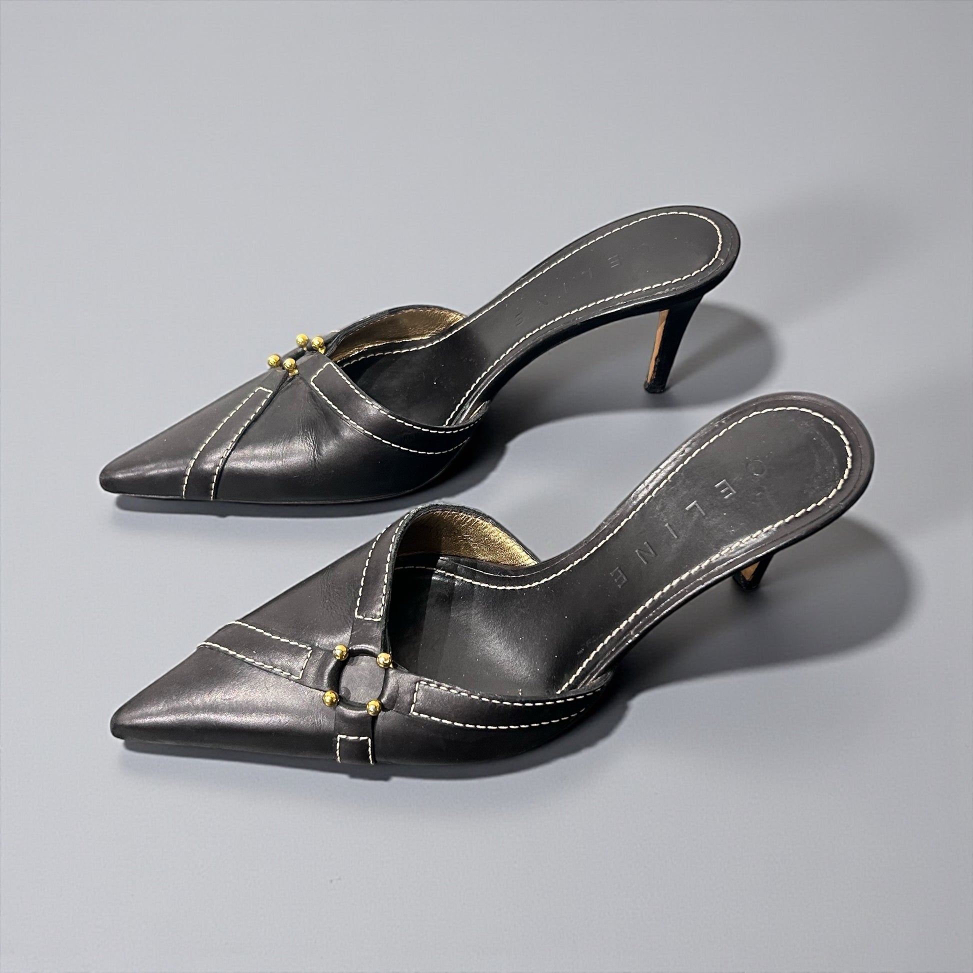 Early 2000s Celine Black Leather Pointed Mules