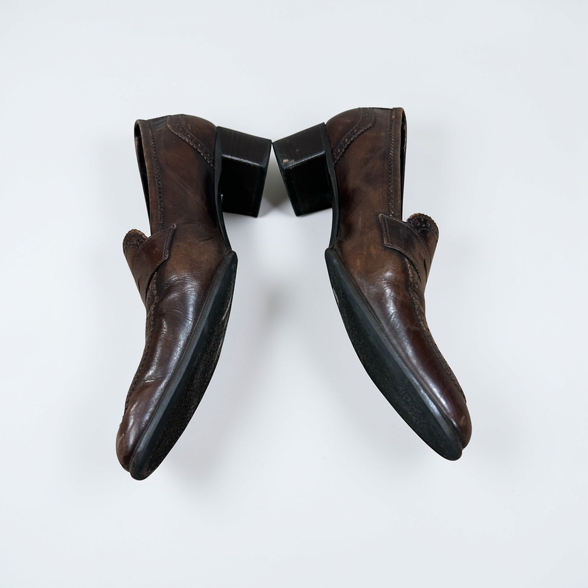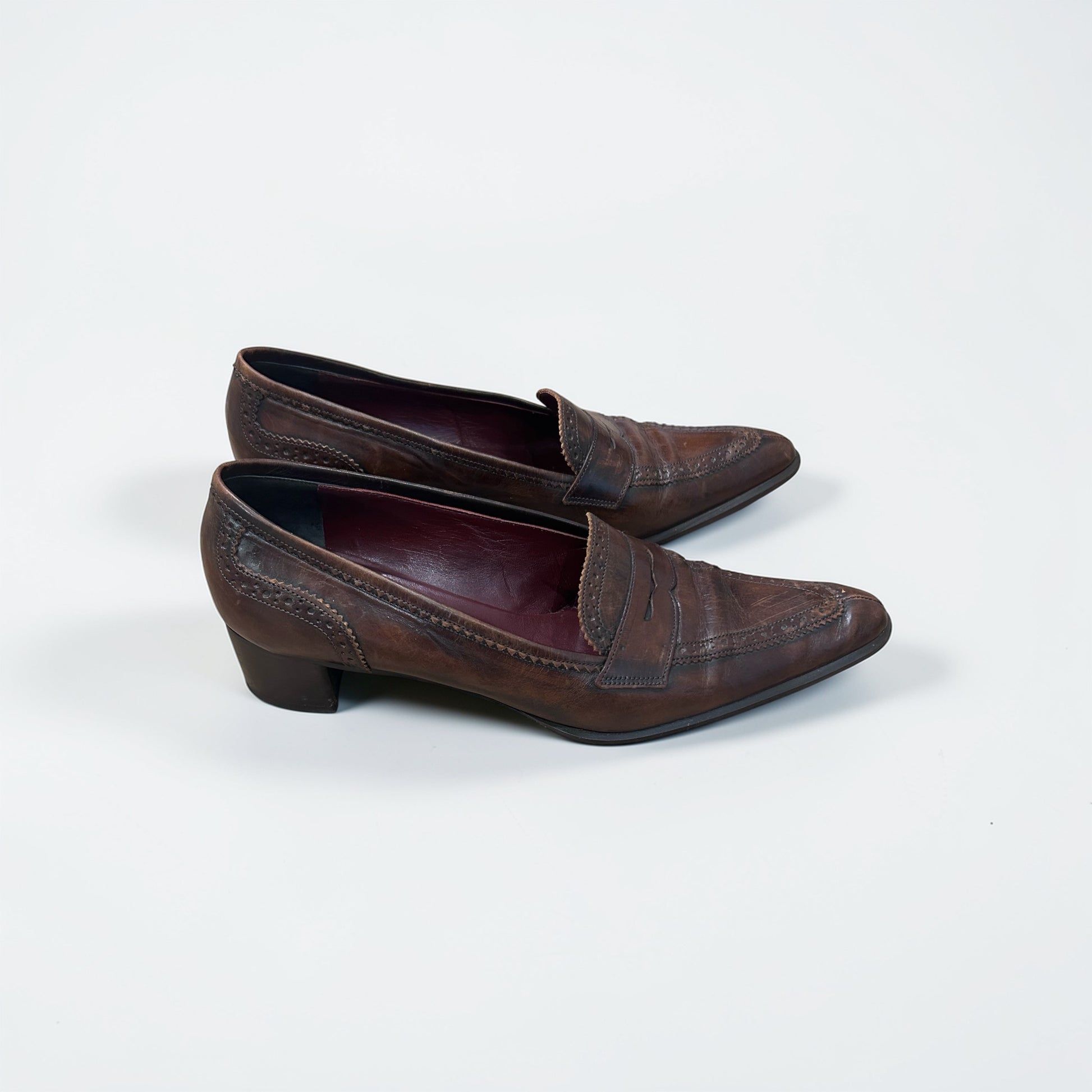 Gabriele Brown Leather Pointed Toe Heeled Loafers| 90s