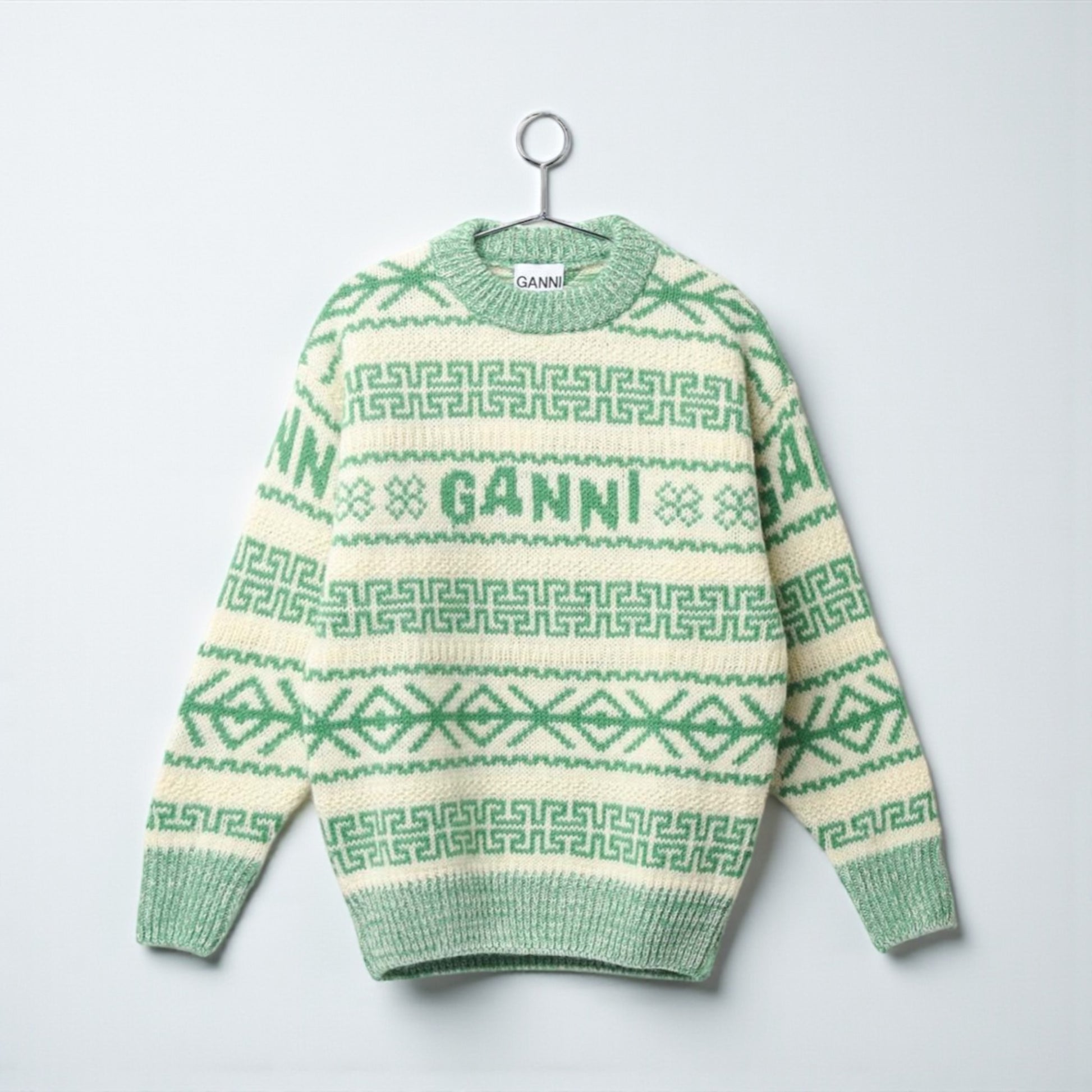 סוודר צמר ירוק־שמנת של המותג הסקנדינבי GANNI