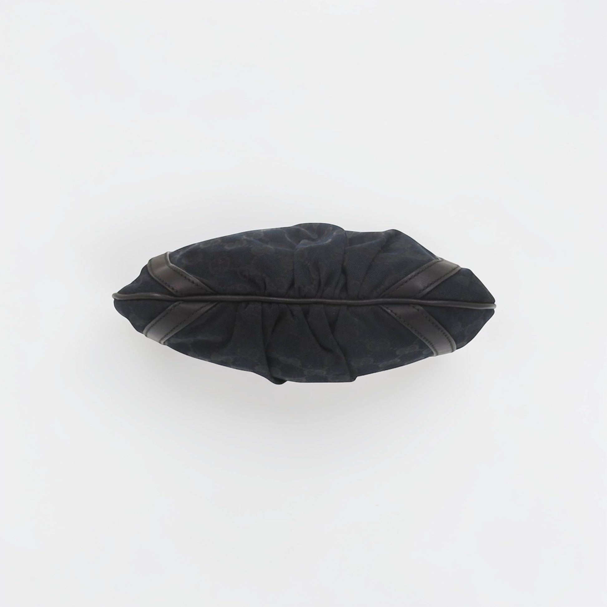 תיק מבית אופנה האיטלקי Gucci מתקופת אמצע שנות ה־2000, בשילוב בד מונוגרמה שחור טון-על-טון ועיטורי עור חלק בגימור מדויק.