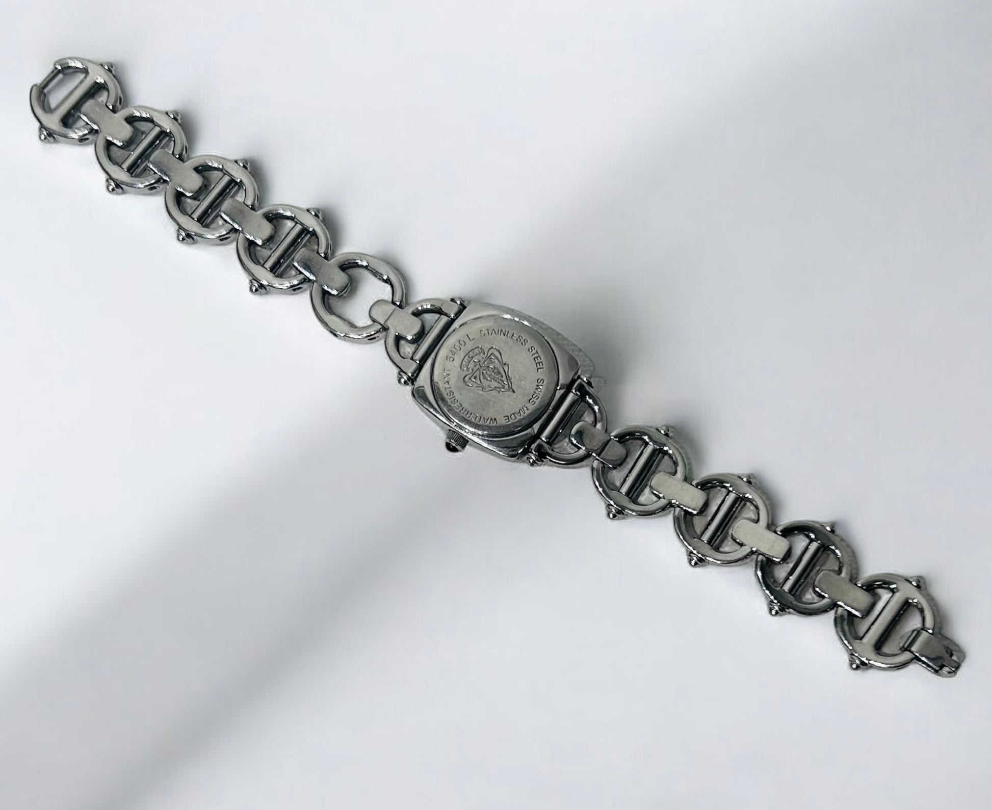 השעון עשוי פלדת אל־חלד (Stainless Steel) בגימור מבריק, עם חוליות שרשרת עגולות היוצרות מראה אלגנטי ובעל נוכחות ייחודית על היד.
