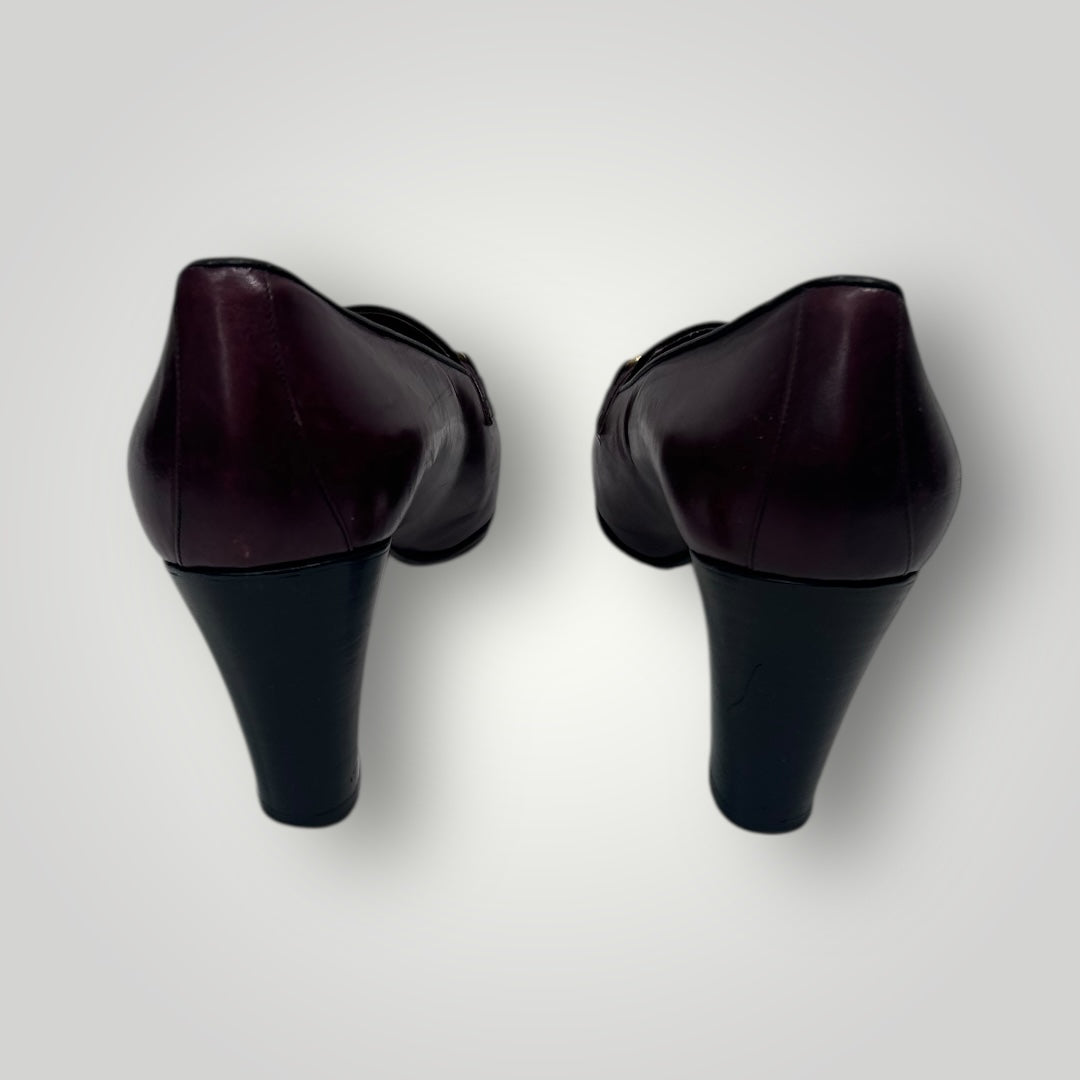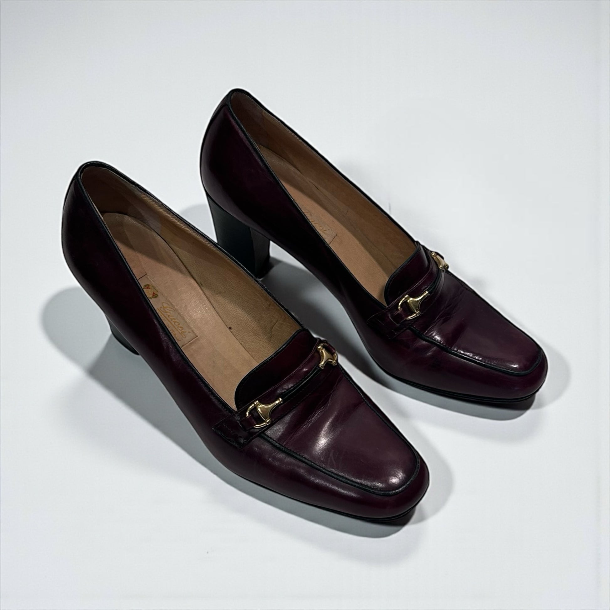 Gucci Vintage Horsebit Burgundy Leather Heeled Loafers
