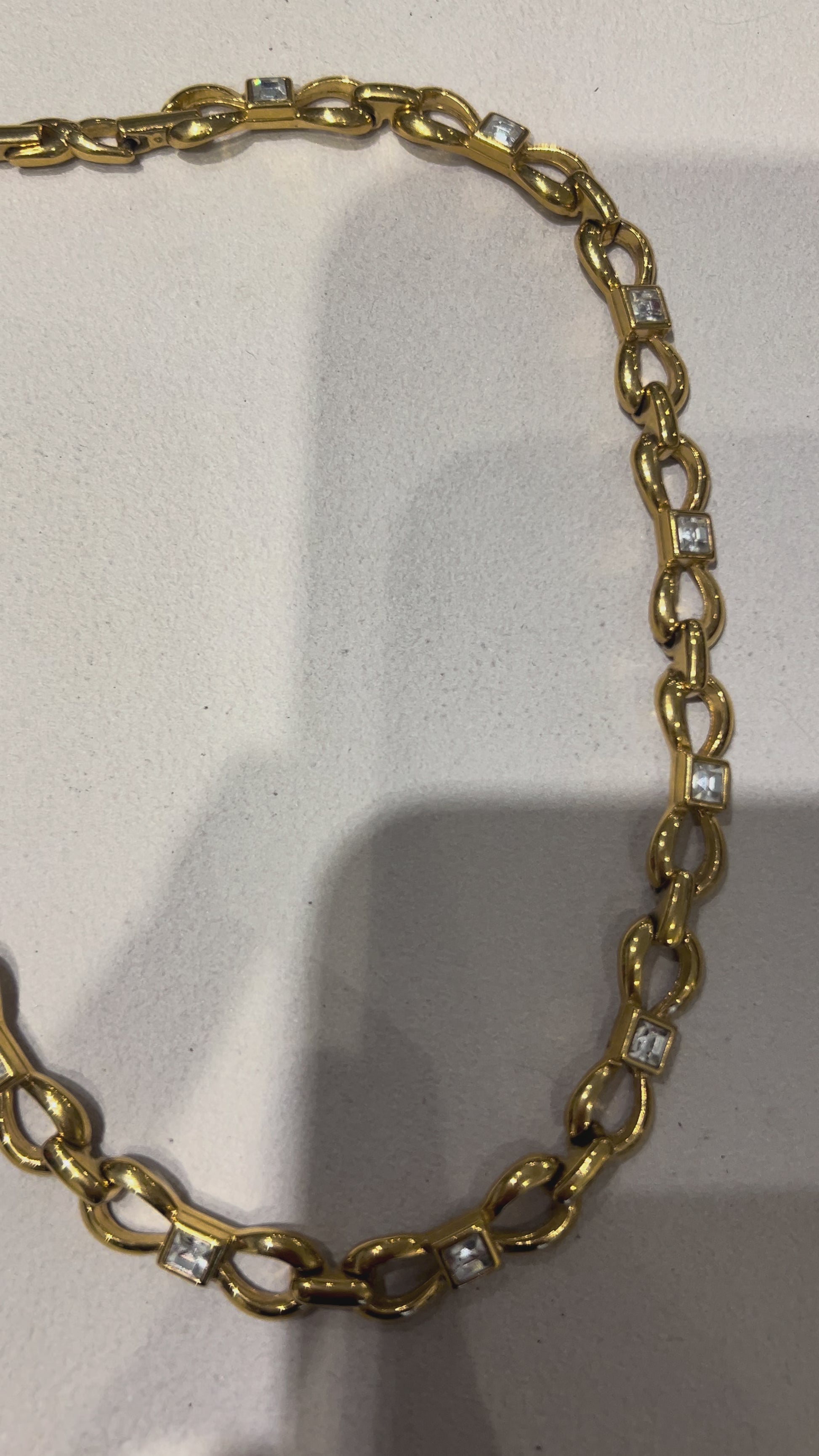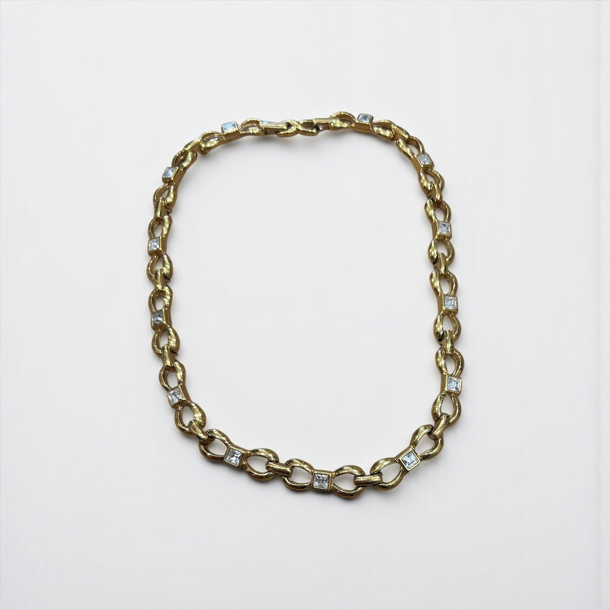 Nina Ricci Gold Plated Crystal Link Necklace |80s-90s