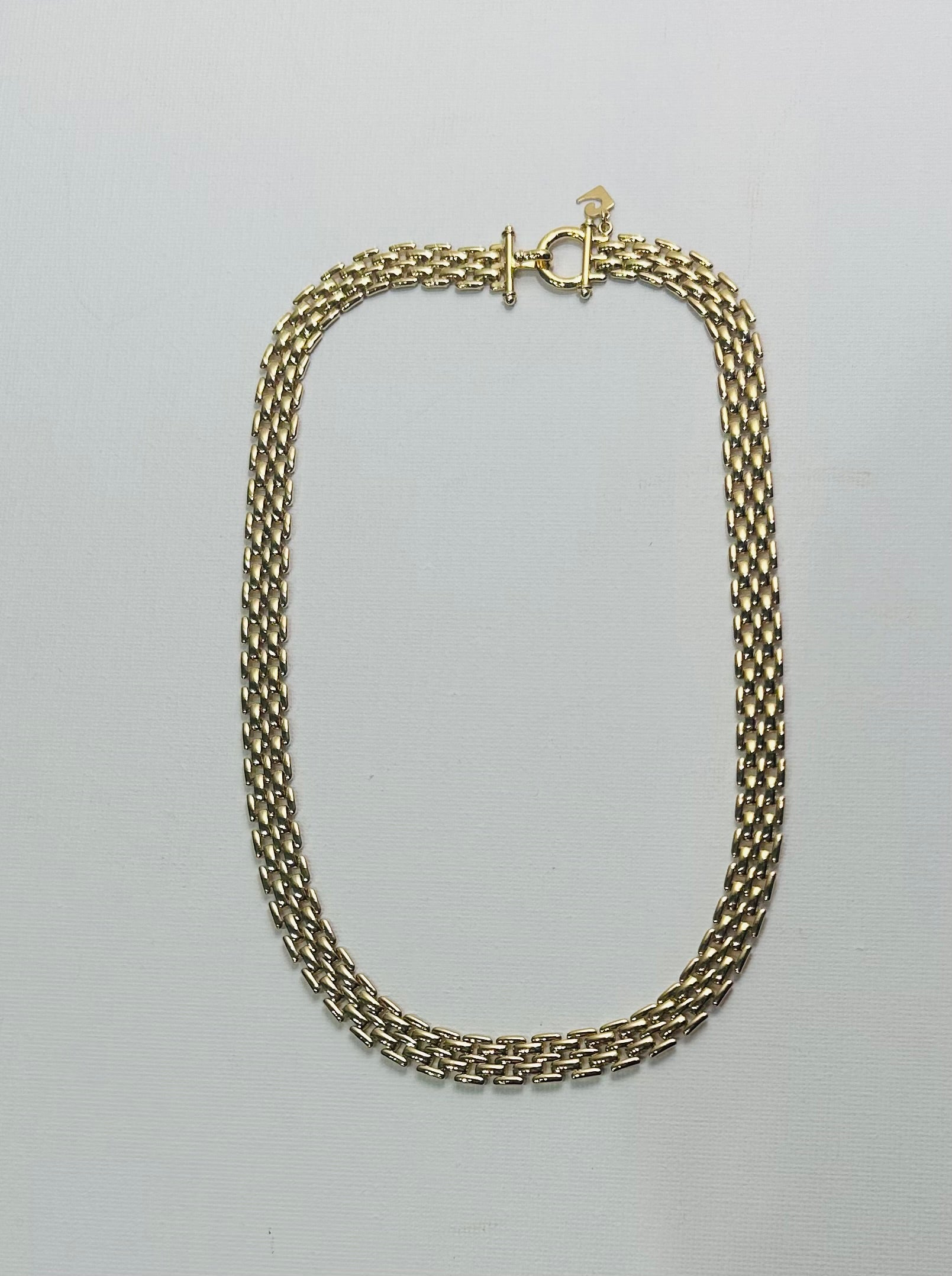 שרשרת וינטג׳ מרהיבה מבית האופנה הצרפתי Pierre Cardin, משנות ה־80 המאוחרות – פריט קלאסי בעיצוב עשיר ומלא נוכחות.