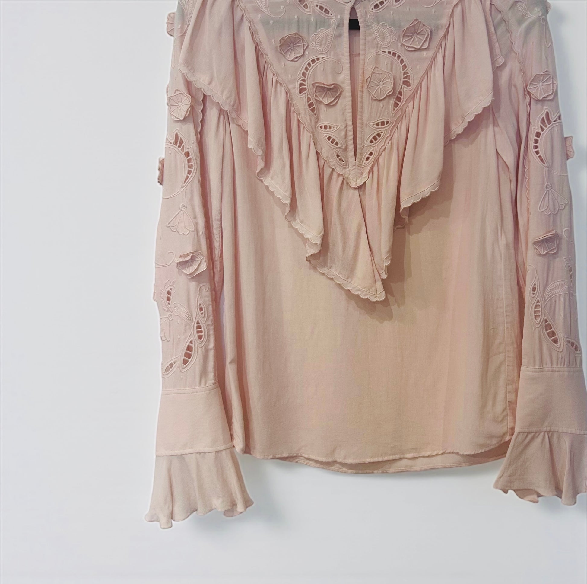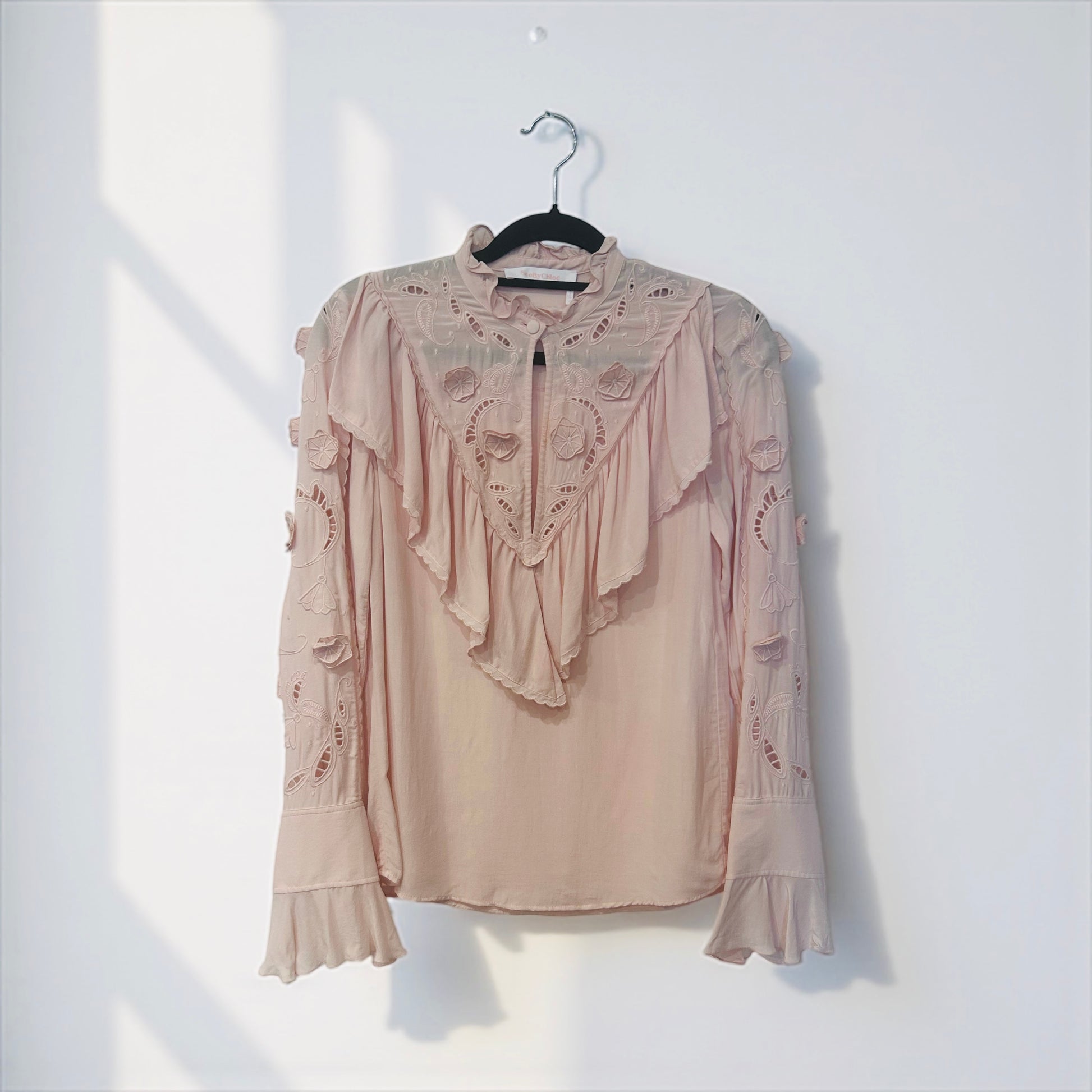 חולצה רומנטית ומרשימה מבית האופנה הצרפתי See by Chloé, בגוון ורדרד פודרה.