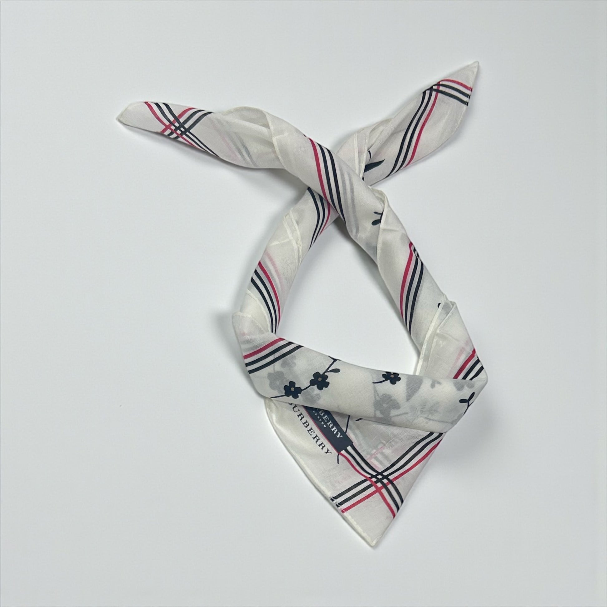 מטפחת וינטג’ בהדפס משובץ ופרחוני מבית האופנה הבריטי Burberry, עשויה 100% כותנה רכה במיוחד .