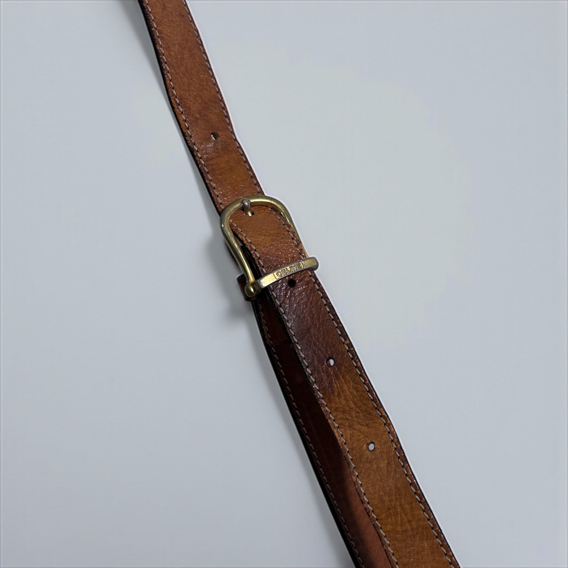 הדגם כולל סגירה באמצעות אבזם מתכת מוזהב בעיצוב טבעת עגולה עם חריטת הלוגו “CELINE”, רצועת עור מתכווננת באבזם ממותג, פנים מרווח עם תאים כפולים ותא רוכסן פנימי.