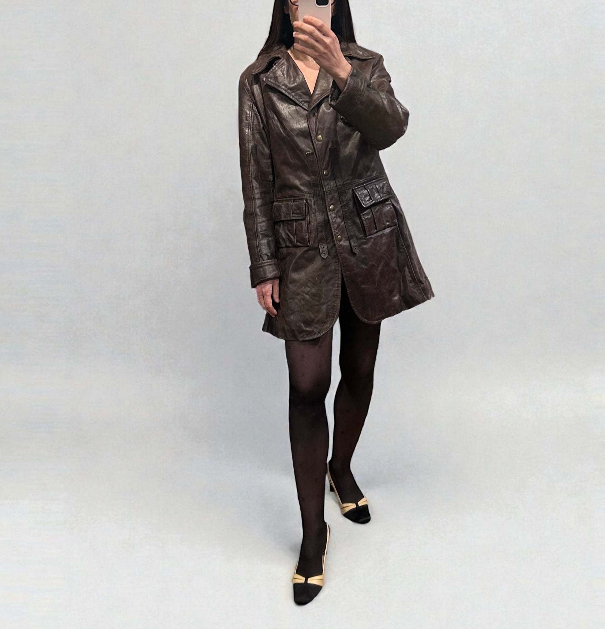 ז׳קט עור וינטג’ בגוון חום עמוק מתחילת שנות ה־2000.