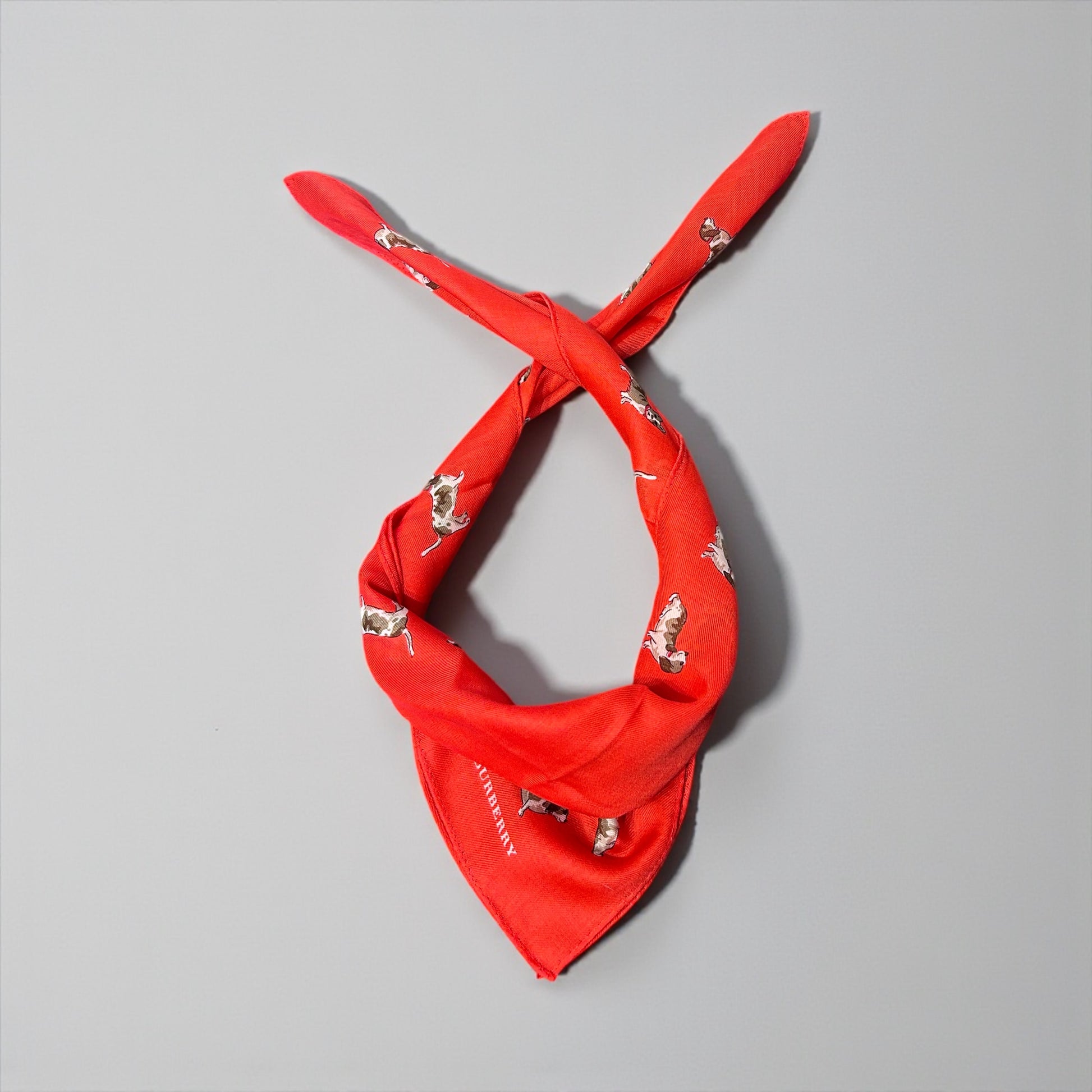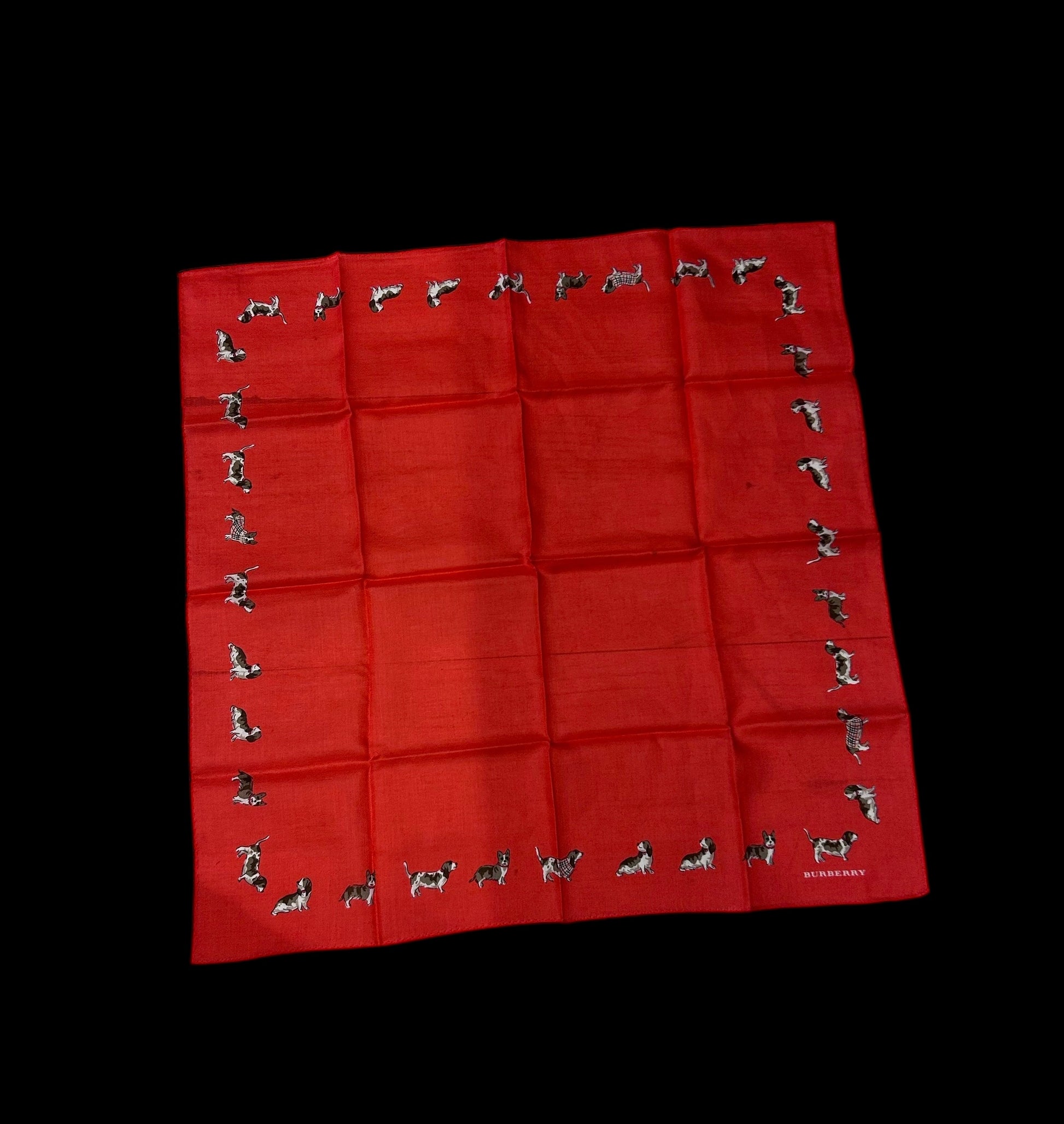 מטפחת וינטג’ בהדפס מתוק של כלבים מבית האופנה הבריטי Burberry, עשויה 100% משי .
