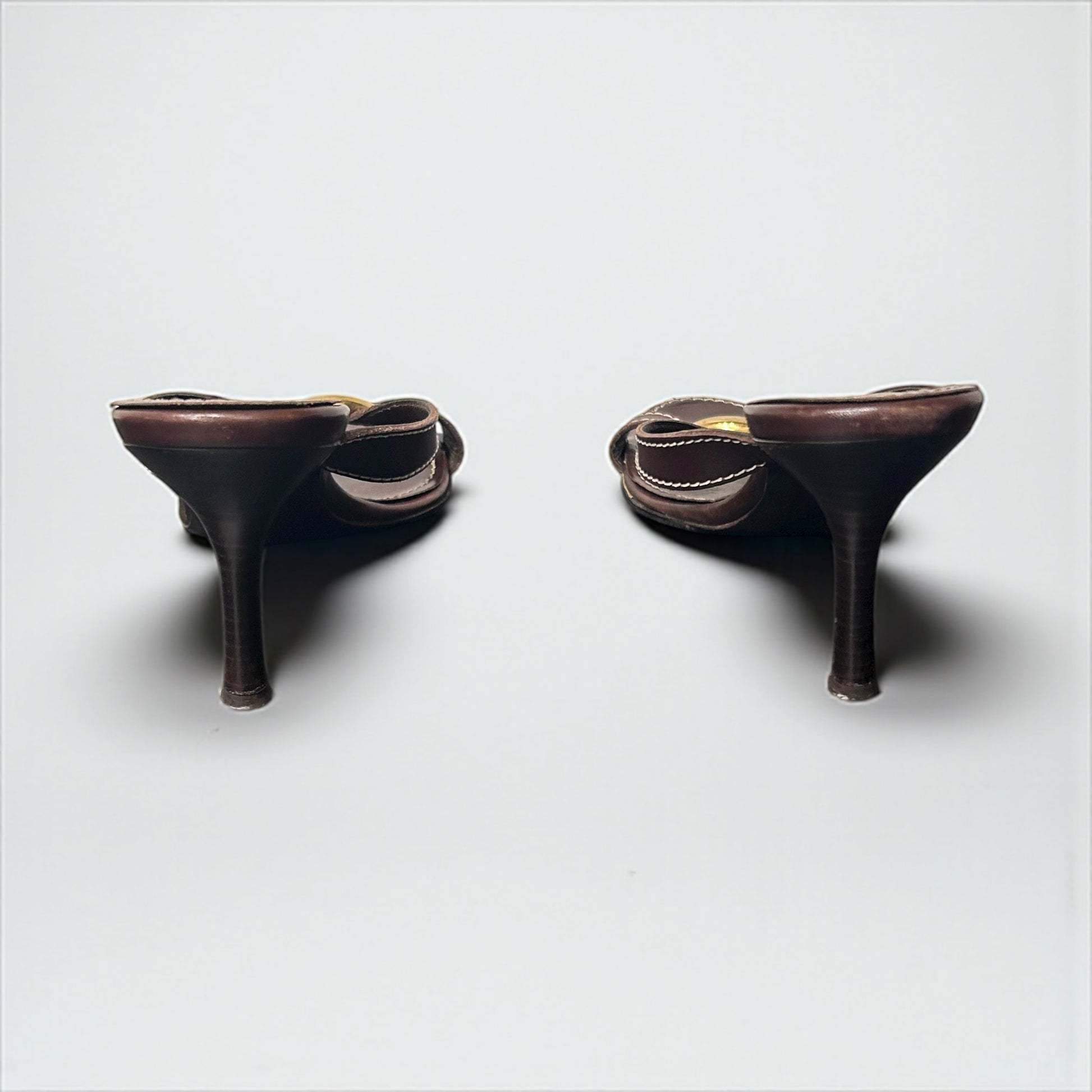 Vintage Celine Brown Leather Mule Sandals with Gold-Tone Hardware