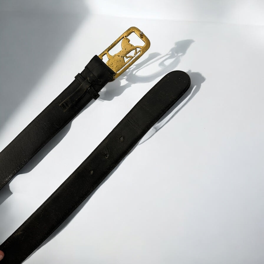 חגורת וינטג׳ מבית האופנה הצרפתי סלין . החגורה עשויה עור בצבע שחור והאבזם שלה בצבע כסף ( אחרי שדהה מזהב)