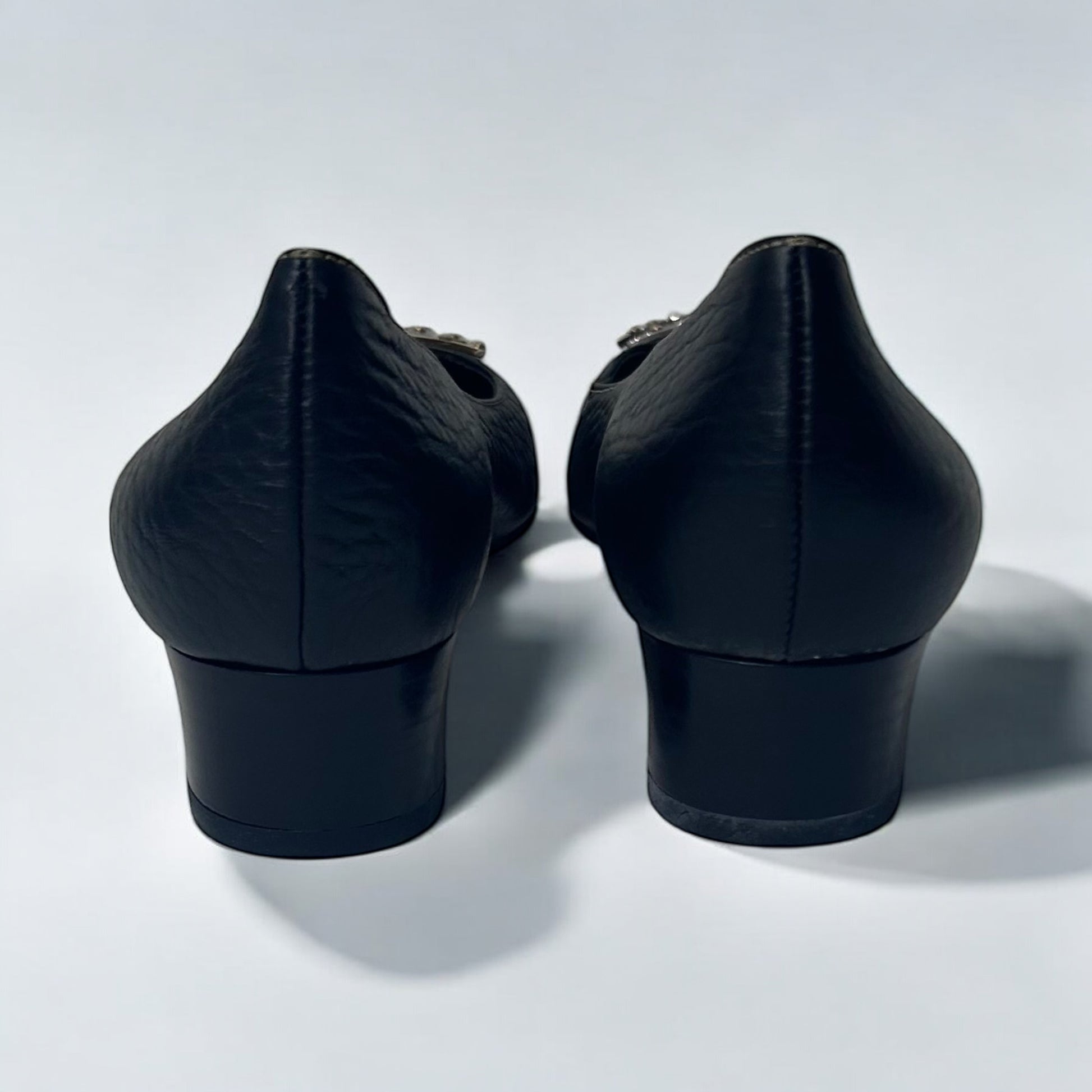 Vintage Dolce & Gabbana Black Leather Pumps with Dual-Tone Buckle