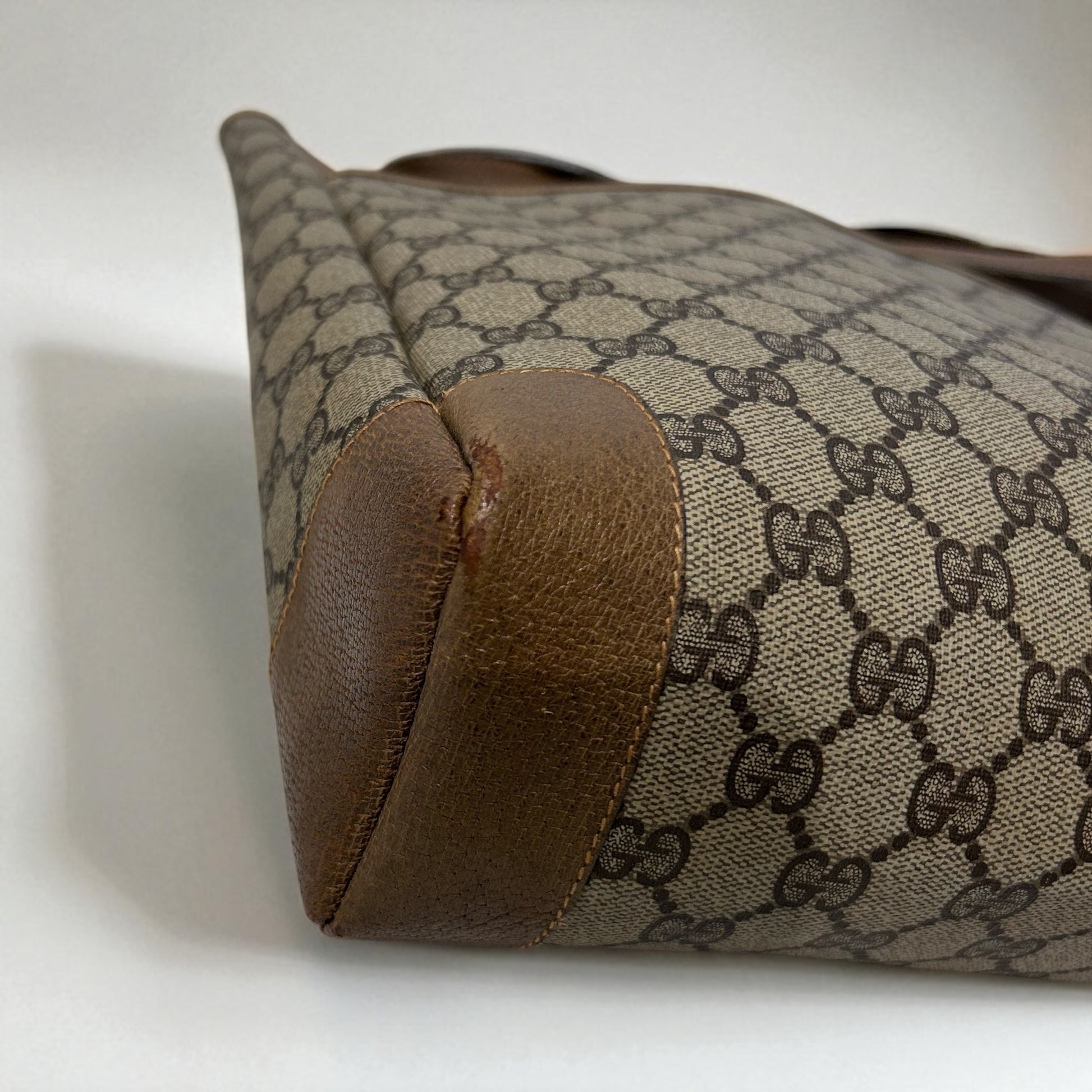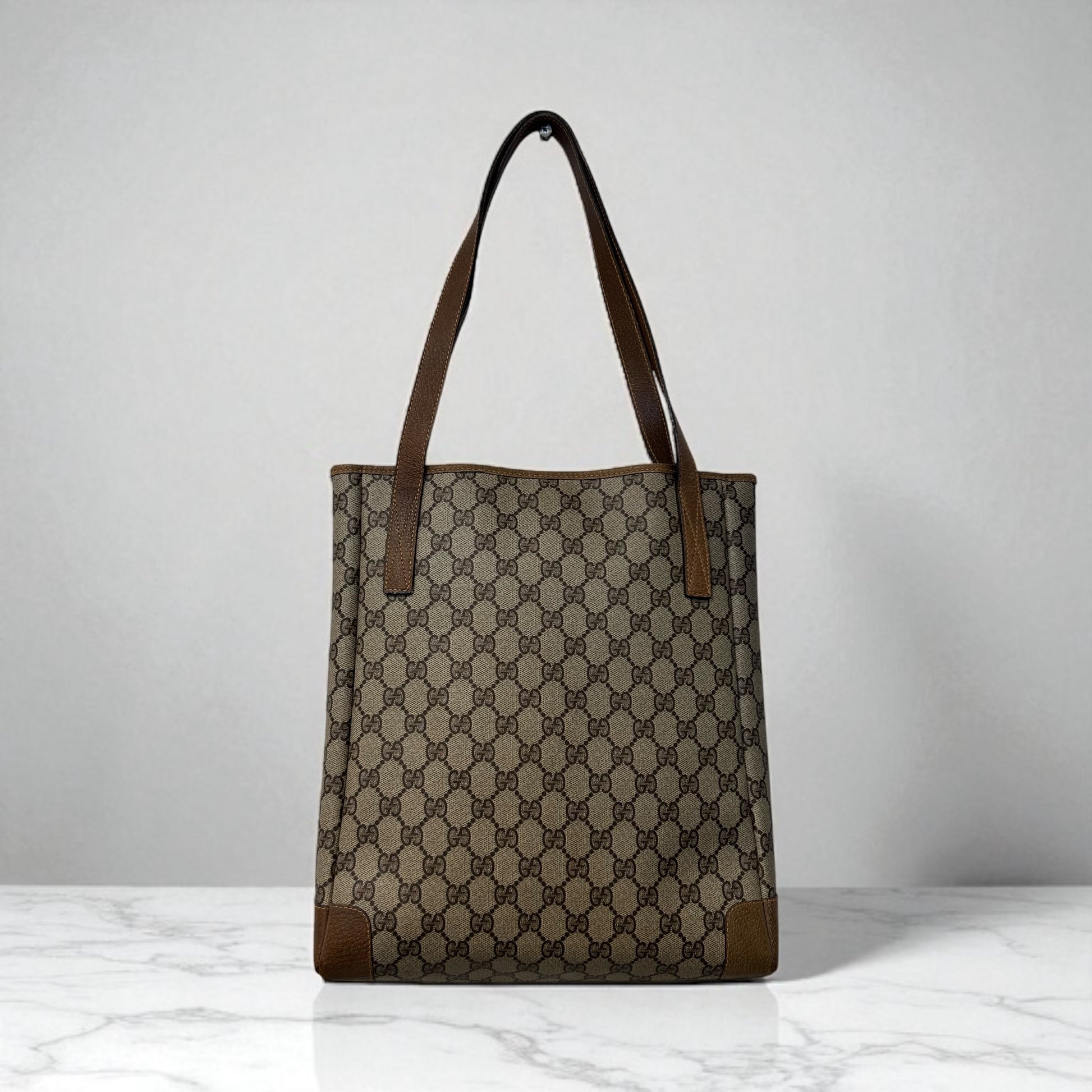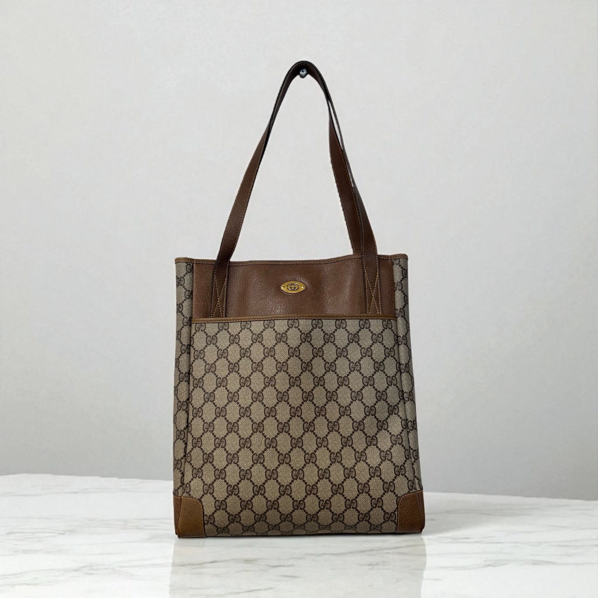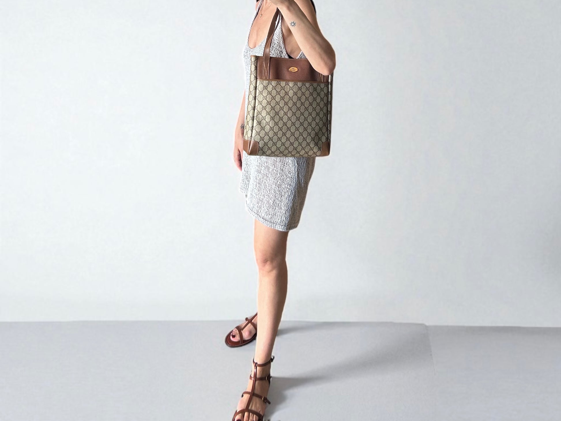 התיק עשוי קנבס בהדפס ה- GG האייקוני של גוצ’י, בשילוב גימורים וידיות מעור חום איכותי.