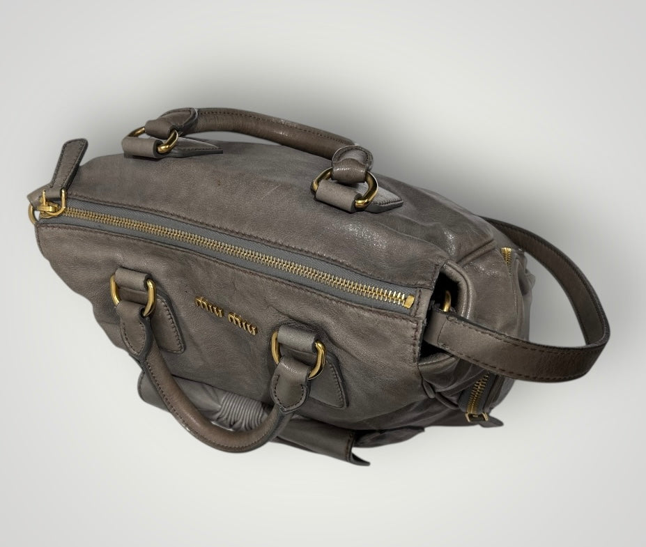 תיק וינטג׳ מבית האופנה האיטלקי Miu Miu משנות ה־2000 המוקדמות, עשוי עור איכותי ורך במיוחד בגימור טבעי .