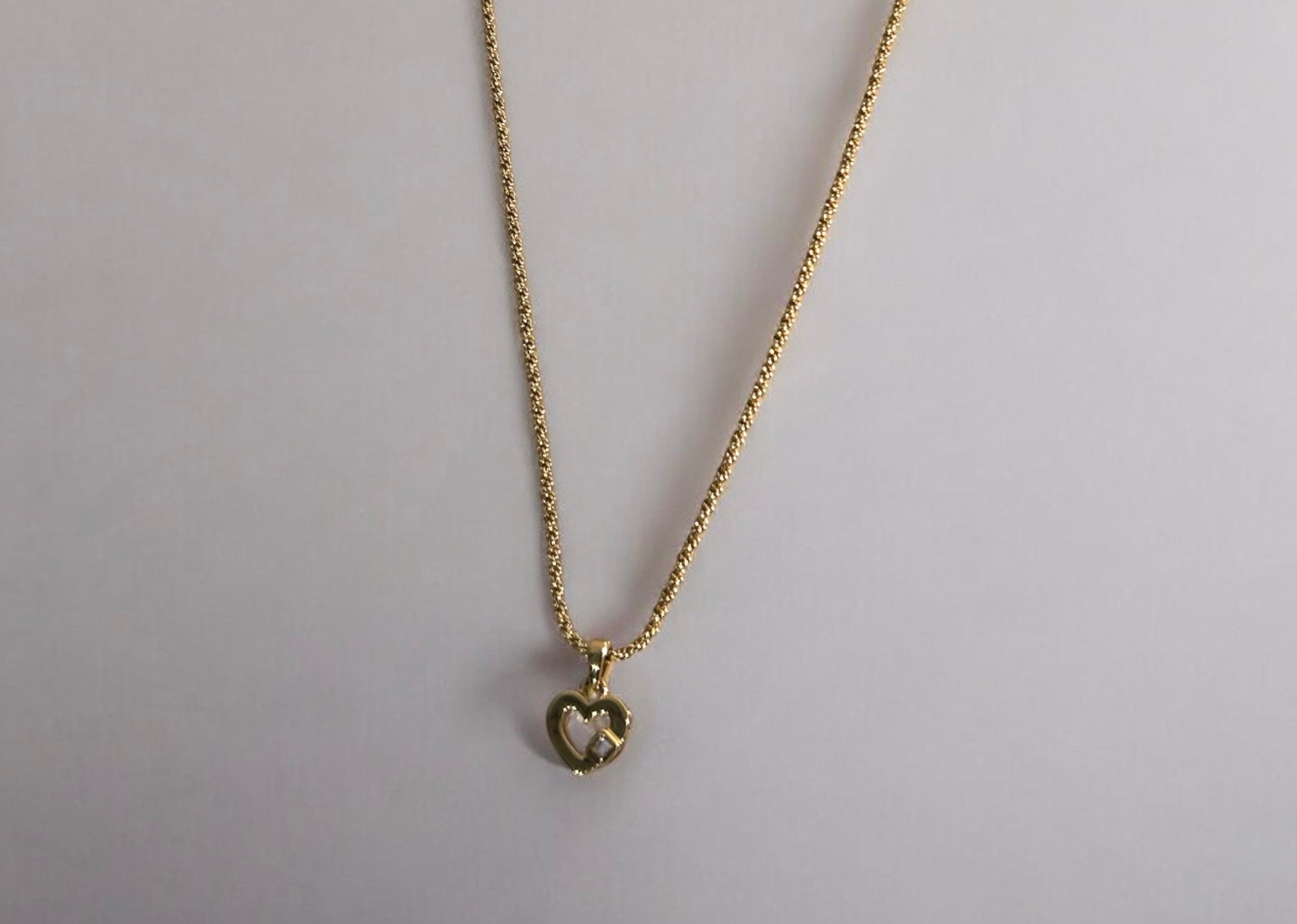 השרשרת עשויה ציפוי זהב 14 קראט עם תליון בצורת לב חלול שבתוכו משובץ זרקון, המוסיף ברק עדין
