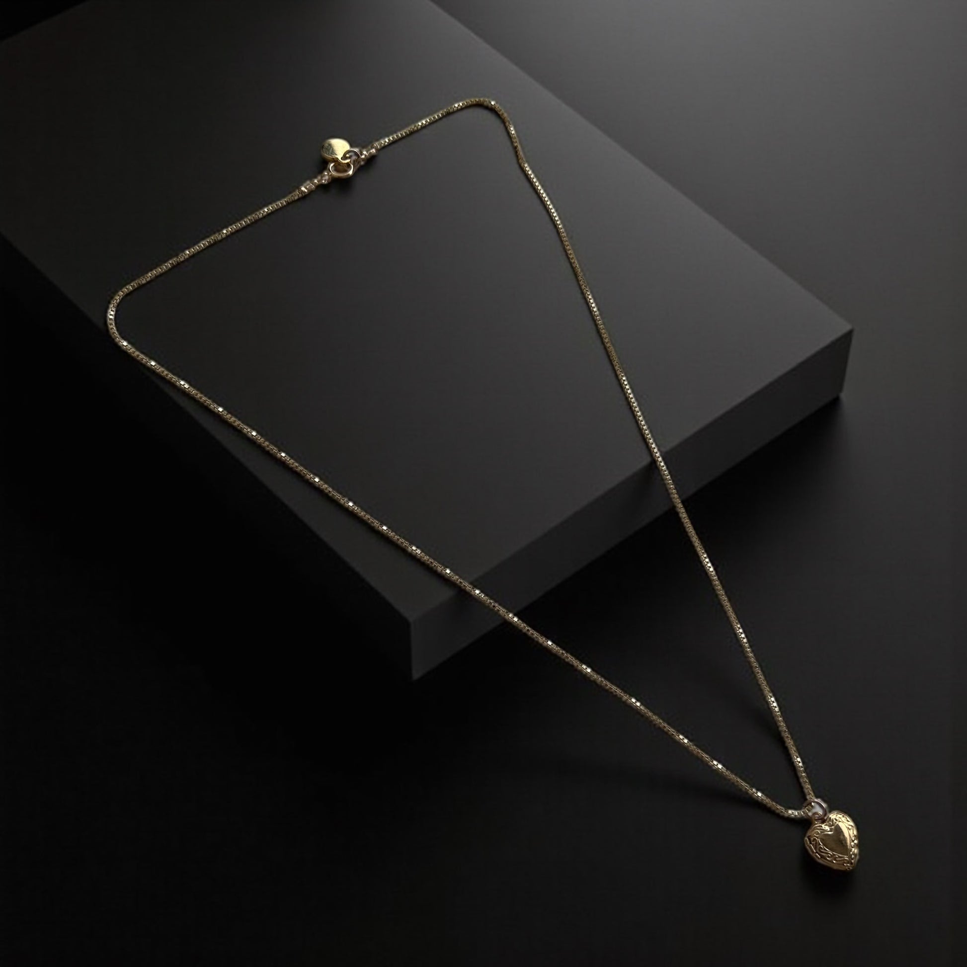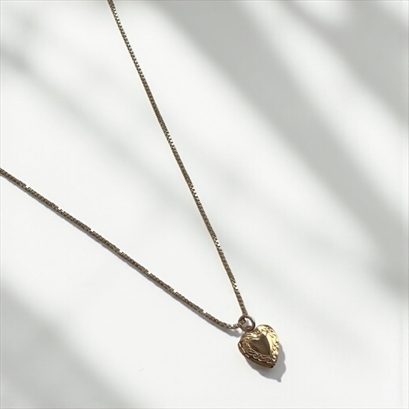 השרשרת עשויה ציפוי זהב 14 קראט ואליה הוספנו תליון לב נפתח , וינטג׳ מ״דד סטוק” ( כלומר מלאי מלפני 30 שנה שלא שומש)