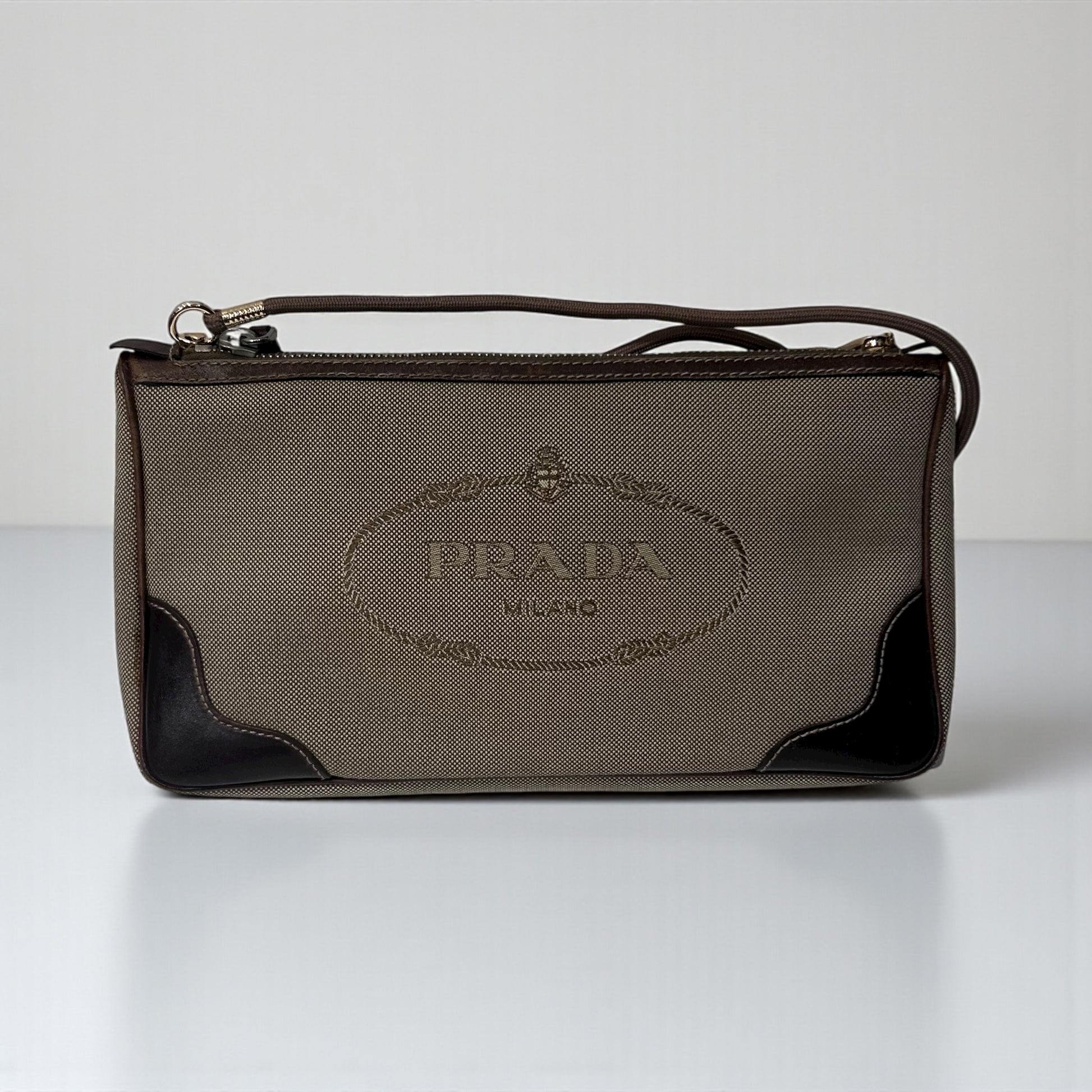 Vintage Prada Canvas & Leather Convertible Clutch Bag