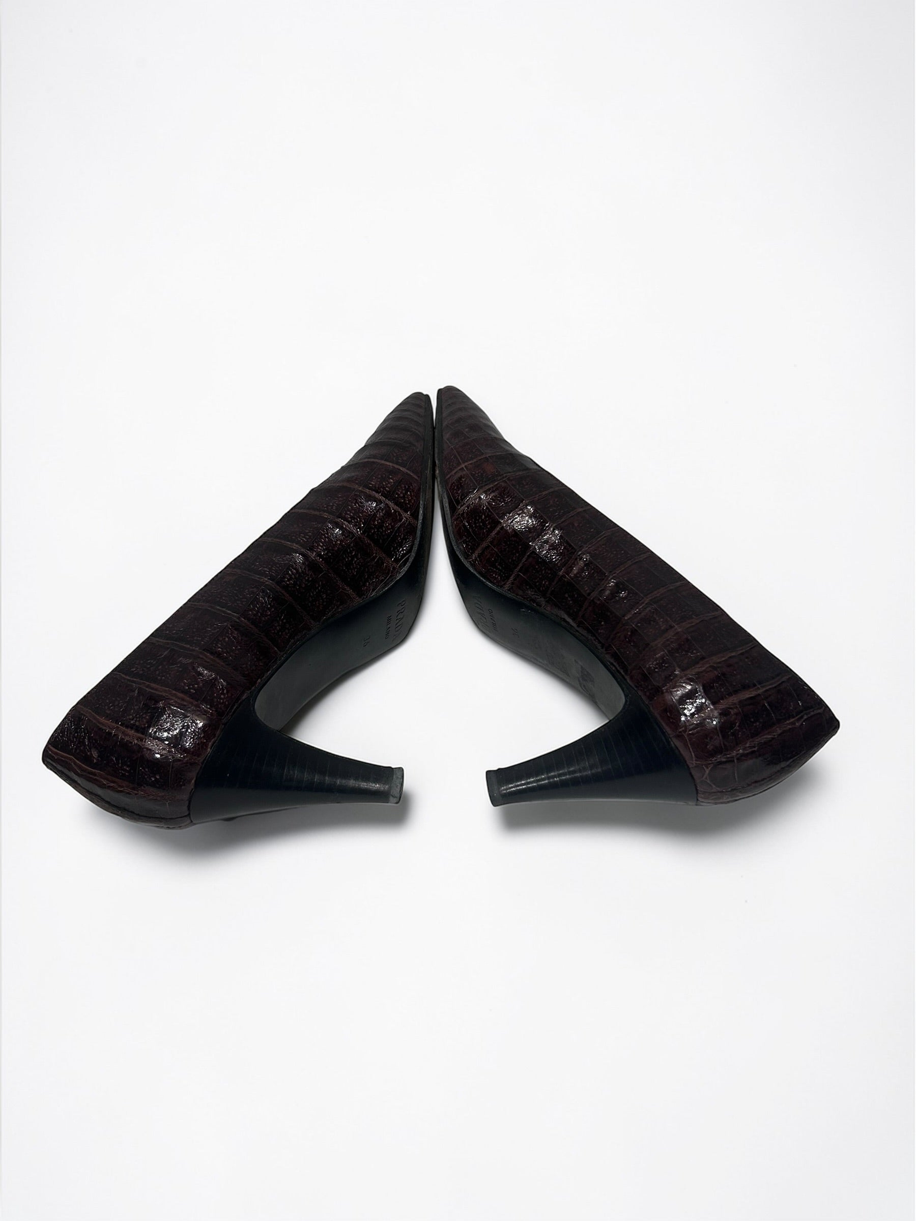 Vintage Prada Milano Croc-Embossed Leather Kitten Heel Pumps |Early 2000s