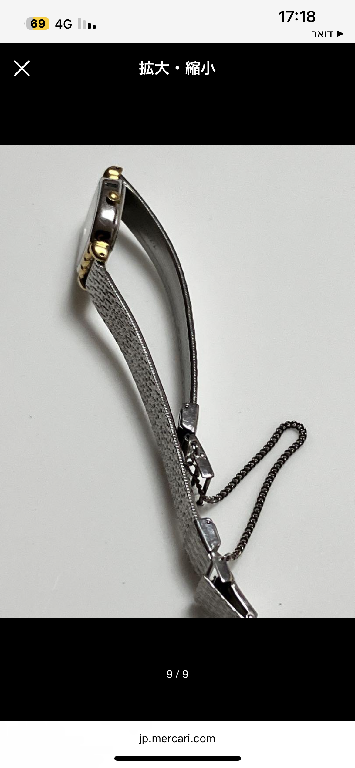 הרצועה עשויה מתכת כסופה במרקם ארוג, עם סגירת קלאספ ושרשרת ביטחון קטנה