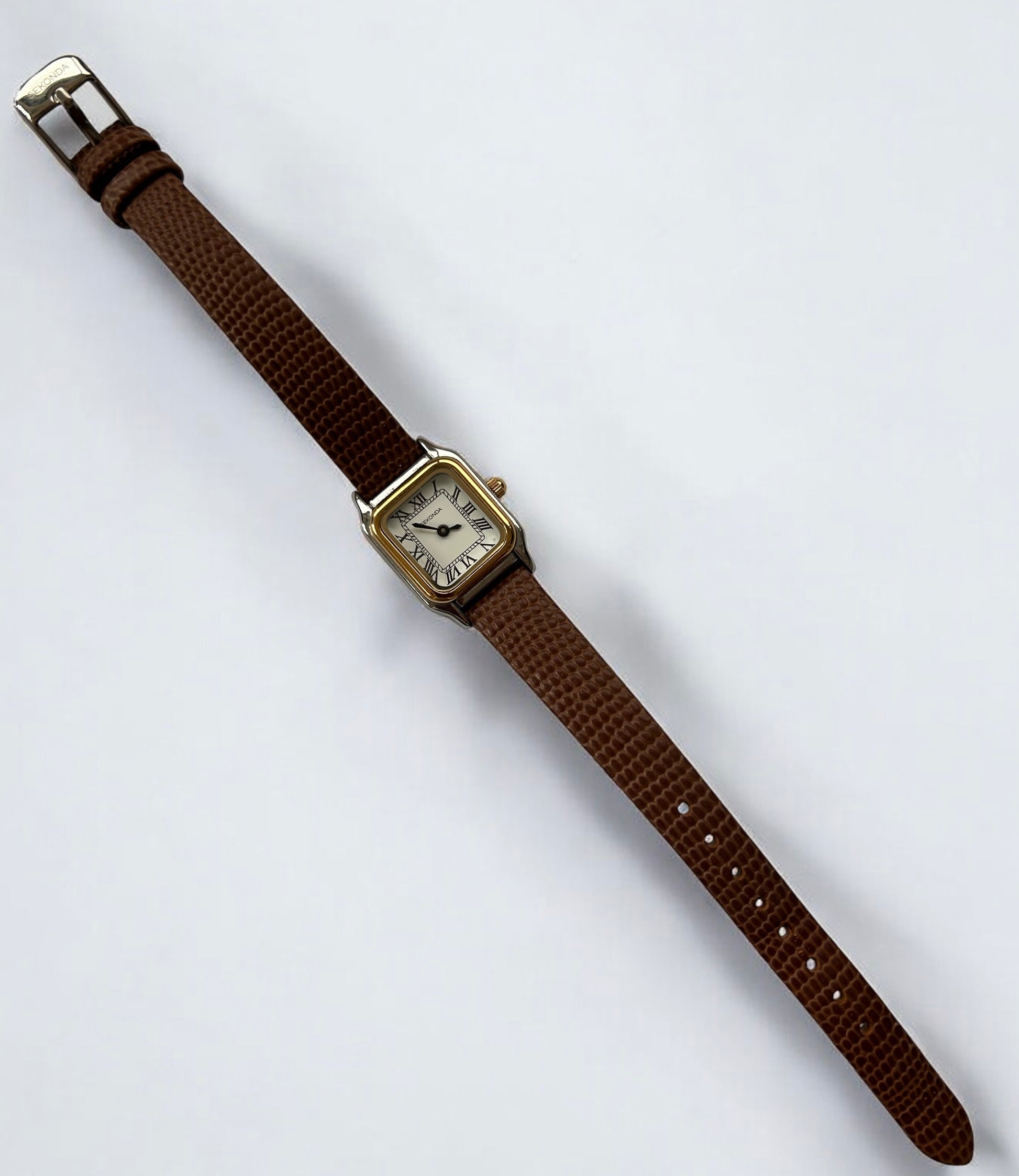 גוף השעון מרובע במסגרת של שני גוונים - כסף וזהב
