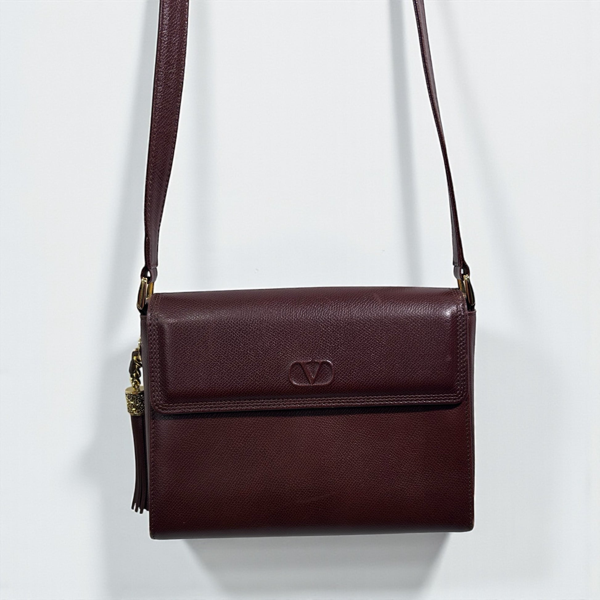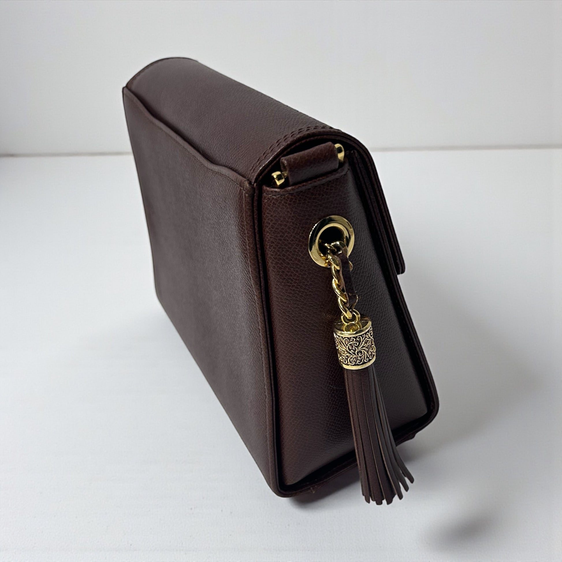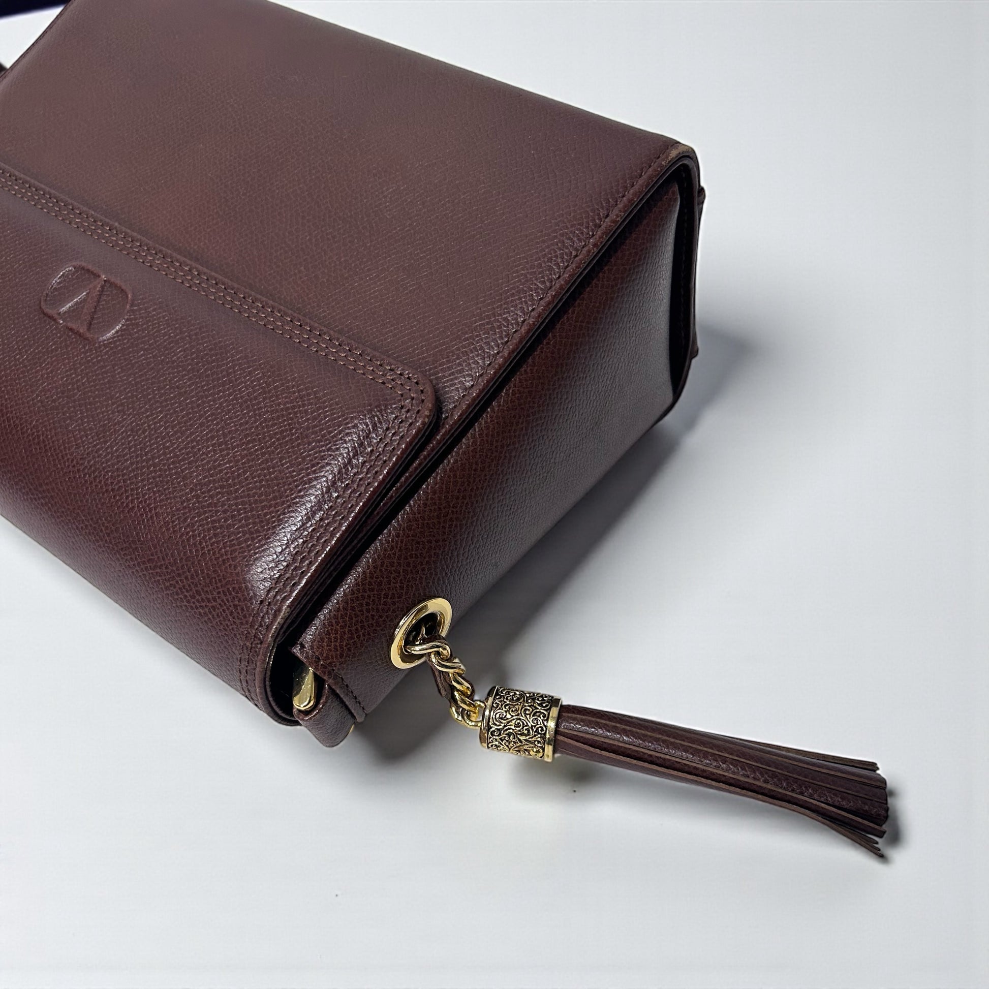 Vintage Valentino Brown Leather Crossbody Bag with Tassel Detail